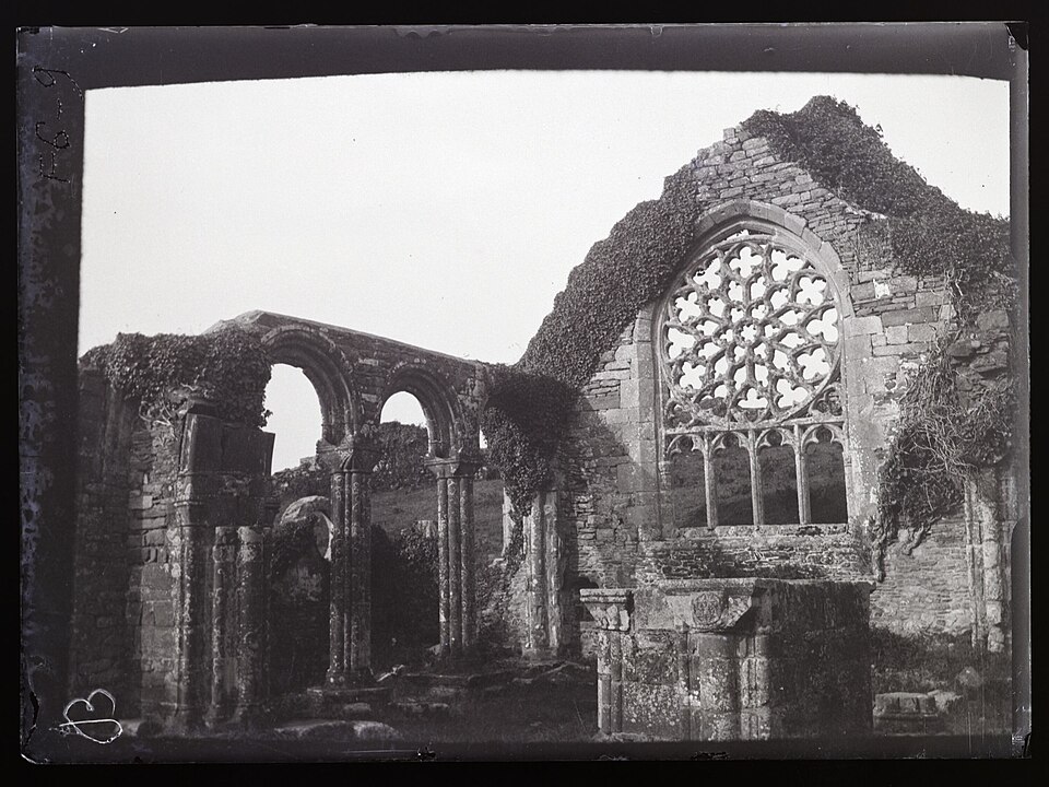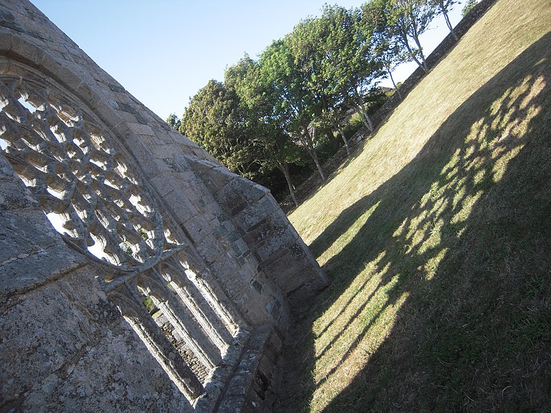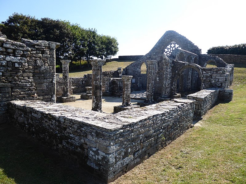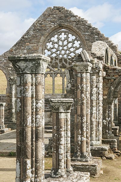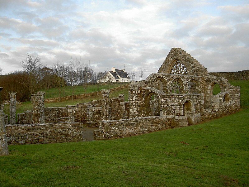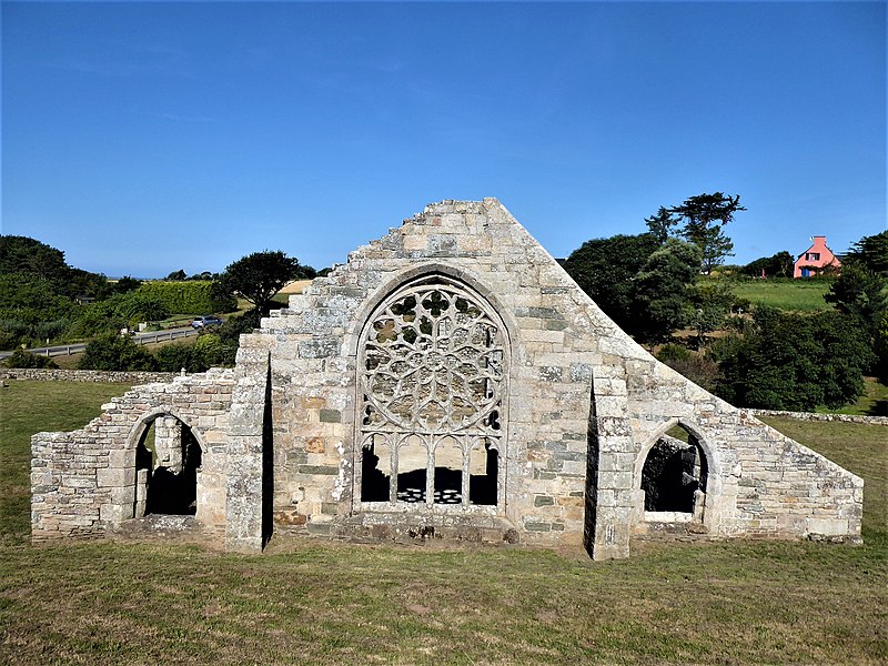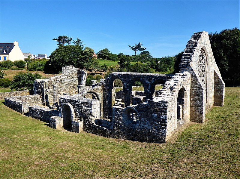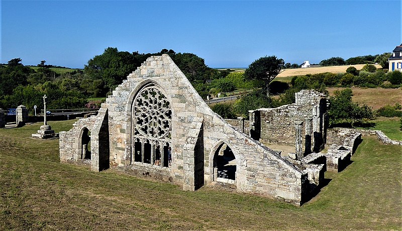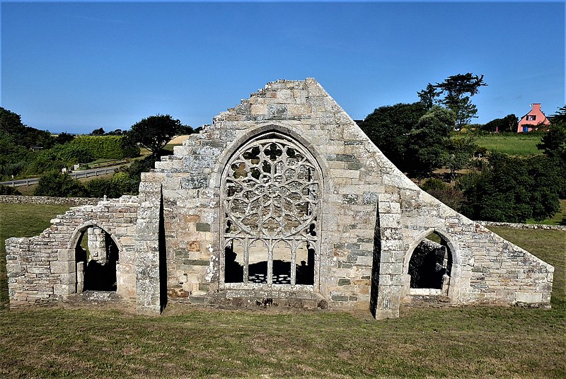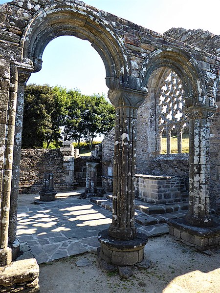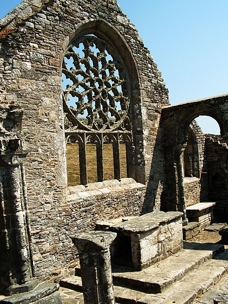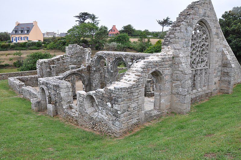 La grande rose de l'abside, d'un siècle au moins plus récente que les arcades du chœur, domine l'abside et conserve des remplages remarquables. La chapelle latérale nord, peu profonde, contient un petit autel de pierre et une crédence-piscine tandis que la chapelle latérale sud, sans élargissement, offrait une grande verrière méridionale et un enfeu aujourd'hui vide. Les piliers polylobés et les socles-bancs typiques de l'École de Pont-Croix subsistent, mais nombre d'éléments sont incomplets et attendent une remise en place plus conforme.