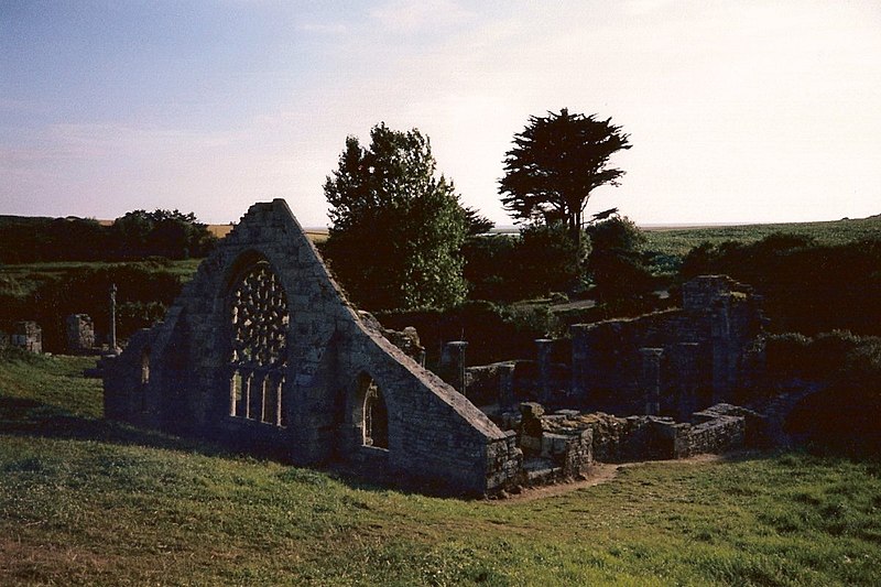 La chapelle de Languidou, en ruines, se situe à Plovan (Finistère), dans l'arrondissement de Quimper, au cœur du Pays Bigouden et de la Basse-Cornouaille, ancien diocèse de Quimper. L'édifice primitif remonte aux XIIe–XIIIe siècles et présente des détails sculptés remarquables ; il a fait l'objet d'une reconstruction au début du XVe siècle attribuée à Auffray Le Guirec (Auffray Gurriec) et à Yves de Revesco. On reconnaît encore sur un chapiteau l'inscription AUVREDUS GURREUHOC OPUS FECIT et, sur un autre, la mention des commanditaires GUILLELMUS CANONICUS ET YVO DE REVESCO AEDIFICAVERUNT ISTAM… ; ces inscriptions servent de base aux datations paléographiques plaçant l'édifice au milieu du XIIIe siècle. La chapelle a été partiellement démolie en 1794 pour fournir des matériaux, le placître portait la date de 1751 et une croix date du XVIe siècle. Classée au titre des monuments historiques, elle est inscrite depuis le 22 octobre 1908 et reste accessible librement et gratuitement.