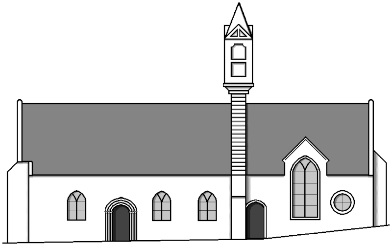 La chapelle mesure environ 22 × 13 mètres ; son plan est presque rectangulaire avec un chevet plat, une nef de quatre travées flanquée de deux collatéraux et un chœur de trois travées avec deux collatéraux. L'édifice, non voûté, présente des supports fins et des contreforts rares, caractéristiques des constructions non voûtées de la région. Les matériaux associent essentiellement de l'amphibolite (prasinite) pour les parties anciennes et du granite pour les parties plus récentes, les couvertures ayant été en ardoise.