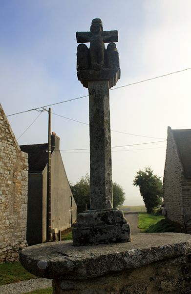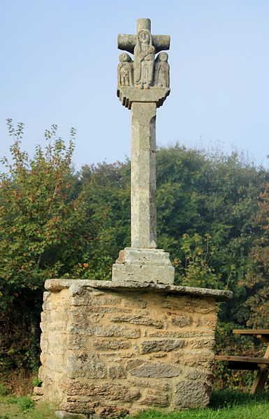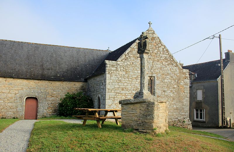 La chapelle et le calvaire de Locmaria se situent au lieu-dit Locmaria, à La Chapelle-Neuve dans le Morbihan. La chapelle date des XVe et XVIe siècles et présente un plan en croix latine ; sa façade occidentale s'ouvre sur une porte en arc brisé moulurée de tores, flanquée de colonnettes à chapiteaux et encadrée d'une bordure en relief reposant sur deux masques. Le calvaire, du XVIe siècle, comporte un socle circulaire surmonté d'un petit socle de section carrée ; son fût est octogonal et la croix porte, d'un côté, un Christ et, de l'autre, la Vierge. La chapelle est inscrite au titre des monuments historiques depuis le 16 avril 1975, et le calvaire est classé au titre des monuments historiques depuis le 16 avril 1935.