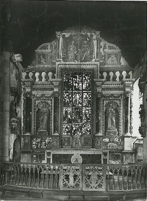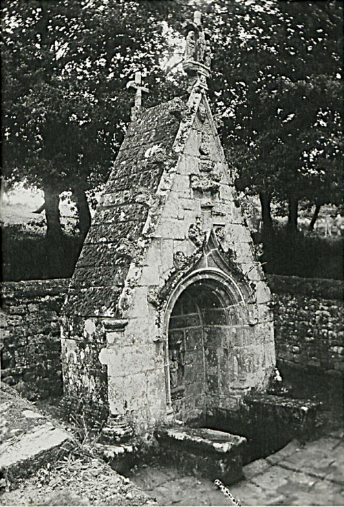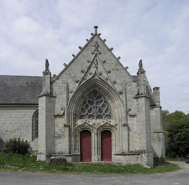 La chapelle de Locmaria se situe au lieu-dit Locmaria, sur la commune de Melrand, dans le Morbihan. Elle adopte la forme d'une croix latine et est construite en granit, avec un voûtement en bois. Le porche d'entrée, muni de portes géminées, occupe le pignon sud du transept. La chapelle conserve des vitraux du XVIe siècle. La flèche du clocher se détache en plan octogonal et, en amortissement sur la galerie, comporte de petits clochetons portés par des colonnettes. L'aile méridionale du transept présente une façade particulièrement remarquable : entre les contreforts d'angle et sous les rampants du toit, un portail solennel occupe presque toute la surface. La grande baie brisée, à voussures multiples, contient deux portes jumelles en anse de panier à accolade et un tympan à mouchettes sans redents. Une accolade intérieure enveloppe la baie en un faux pignon qui atteint le sommet du pignon. On y distingue encore des crosses végétales ; des animaux remplacent les fleurons et se juchent sur les pinacles latéraux. Cette composition figure parmi les plus belles façades du Morbihan. La fontaine de la chapelle est un édicule en granit, placé au centre d'une petite enceinte formée de quatre murs ; elle porte la date de 1574 en façade. Elle se compose d'une niche d'où jaillit la source, encadrée dans un pignon décoré de crochets et de fleurons et terminée par une croix. Les statuettes qui ornaient les colonnettes des deux angles de la façade ainsi que celle de la niche intérieure ont disparu. La fontaine a été classée au titre des monuments historiques le 25 septembre 1928 et la chapelle le 10 juillet 1945.