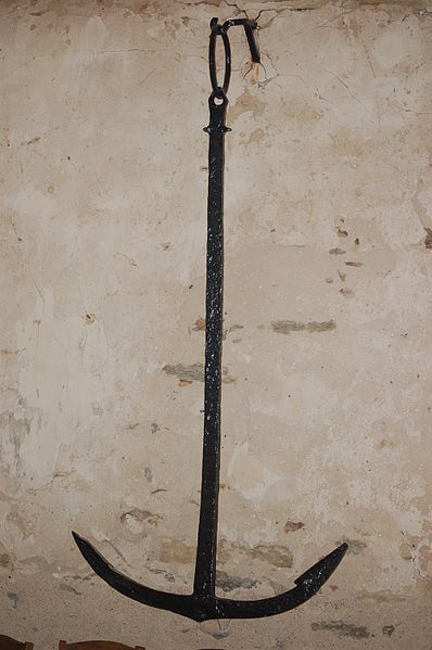 Une ancre d’origine viking, découverte en 1871 et exposée à l’entrée de la chapelle, présente au sommet de la vergue deux tourillons sous l’organeau permettant de solidariser un jas de bois ; elle serait liée à l’occupation du site par les Normands en 852 et pourrait avoir été fabriquée localement, compte tenu de son faible état d’usure et de la présence d’une voie appelée « Les Forges ». La chapelle conserve par ailleurs quelques éléments sculptés, dont un putto et une statue de saint Guénolé dont le pied est endommagé.