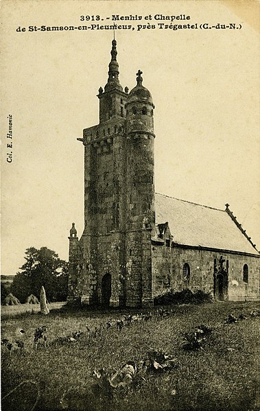 La chapelle de Saint-Samson, située à Pleumeur-Bodou (Côtes-d'Armor, Bretagne), est un édifice rectangulaire construit entre 1575 et 1631, à la fin du XVIe et au début du XVIIe siècle, puis restauré au XIXe siècle. Le contrefort sud porte la date de 1575. Typique de l'architecture de Beaumanoir, architecte lannionnais, elle présente un clocher-mur auquel se rattache un campanile percé de trois baies. À ce campanile est accolé un escalier cylindrique en pierre, couvert d'un dôme, et l'ensemble est surmonté d'une flèche octogonale. Des mâchicoulis élargissent la plateforme-terrasse du clocher. La façade sud, percée d'un oculus, s'ouvre par une entrée moulurée en accolade, ornée de pinacles à fleurons prolongeant les piédroits. La maîtresse-vitre est de style flamboyant. La chapelle était fréquentée par les fabriciens de Pleumeur et attirait des pèlerins venus demander la guérison de leurs membres malades à l'eau de la fontaine Saint-Samson ou auprès de la croix placée près de la porte. L'accès se fait par le champ ; la fontaine, indissociable des chapelles bretonnes, se trouve à droite du chemin menant à l'édifice. Un menhir christianisé, daté de 3000 av. J.-C., fait face à l'entrée de la chapelle. L'édifice est inscrit au titre des monuments historiques par arrêté du 7 octobre 1964.