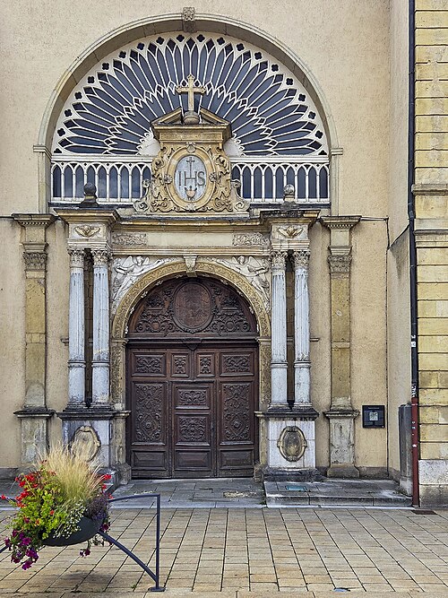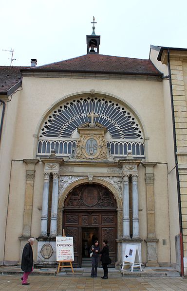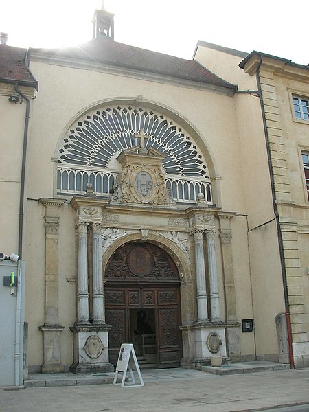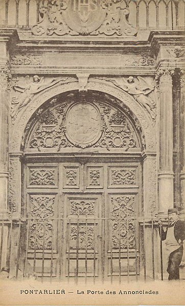 La chapelle des Annonciades, située au 69 rue de la République à Pontarlier (Doubs), est l'ancien édifice conventuel des Annonciades célestes, arrivées en ville en 1612. La construction du couvent débute vers 1612 sous la direction d'Antoine Belin ; la chapelle et le portail sont réalisés par Nicolas Cailler entre 1713 et 1715, et les sculptures des vantaux sont l’œuvre de Joseph Guyon en 1725. Les Annonciades formaient un ordre contemplatif strict suivant la règle de saint Augustin, nommé « célestes » en référence à la couleur bleu ciel de leur manteau et de leur scapulaire ; elles furent expulsées par les lois révolutionnaires de 1790 et ne retrouvèrent plus leur ampleur d'origine. Seul vestige de l'ancien couvent, la chapelle a été désacralisée et transformée en salle d'exposition depuis la fin des années 1920 ; les bâtiments conventuels ont été très remaniés. La chapelle bénéficie de protections au titre des monuments historiques : le portail est classé depuis 1913, les vantaux sont également classés comme objets en 1913, et le reste de la chapelle a été inscrit en 1936. Sur le plan architectural, la nef compte trois travées et est ornée de pilastres à chapiteaux de style ionique.