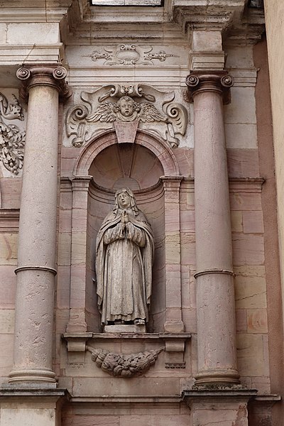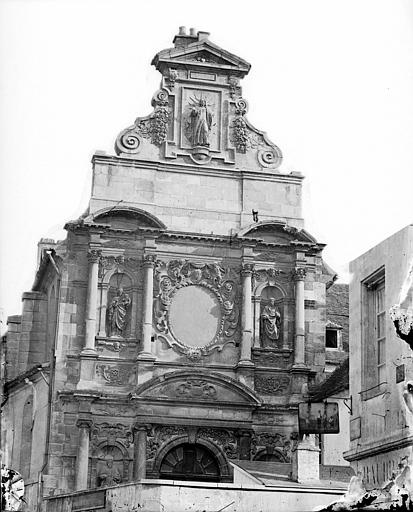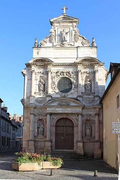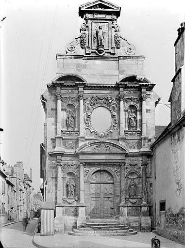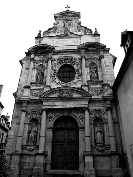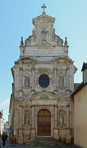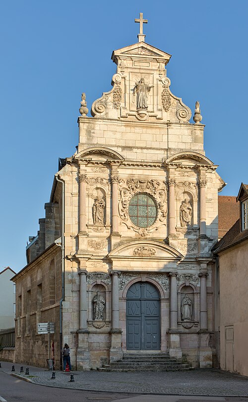 La chapelle des Carmélites de Dijon, vestige d'un ancien couvent carmélite du XVIIe siècle de style baroque, se situe dans le centre sauvegardé de Dijon. Sa façade, richement sculptée en pierre blonde et rose, est ornée de frontons, de colonnes aux chapiteaux ioniques et corinthiens, et de statues représentant sainte Thérèse, le prophète Élie, saint Joseph, la Vierge et le Christ; le Christ occupe le sommet de la façade tandis que la statue d'Élie se trouve à gauche du portail. Après la mort de sainte Thérèse d'Avila, ses filles fondent le 21 septembre 1605 le carmel de Dijon, à la demande et avec le soutien de la Dijonnaise Jeanne Chevrier et avec l'accord d'Anne de Jésus ; il s'agit du troisième carmel établi en France, après ceux de Paris et de Pontoise. Le monastère est édifié rue Saint-Anne entre 1608 et 1642 ; la première pierre de la chapelle est posée en 1609 par André Fremyot, abbé de Saint-Étienne, et la chapelle est consacrée le 4 mai 1613 sous le vocable de saint Joseph par Jean de Passelaigue, évêque de Belley. Aujourd'hui, il ne subsiste de l'ensemble conventuel que la façade baroque. L'attribution du portail est discutée : Victor Dumay la prête à l'architecte Nicolas Tassin, Marcel Mayer en attribue le dessin à l'amateur Guillaume Tabourot d'après des documents conservés à la Bibliothèque municipale de Dijon, et les archives signalent Jean Braconnier dès 1625 comme maçon ayant participé à la construction. Lors de la Révolution française, le clocher est détruit, les communautés monastiques sont dissoutes et leurs biens deviennent biens nationaux ; le 30 septembre 1792, les carmélites sont expulsées et rejoignent le carmel de Beaune. En 1810, le couvent est cédé à la ville, transformé en caserne Brune puis utilisé pour divers services municipaux. Le carmel est refondé en 1865 au 13 rue Saint-Lazare (ultérieurement rue Jean-Baptiste-Baudin) ; dans ce bâtiment, où Élisabeth de la Trinité s'éteint en 1906, le couvent est détruit en 1978 et la communauté est transférée près de Flavignerot, sous les noms de « Carmel de Dijon » ou « Carmel de Dijon‑Flavignerot ». Le portail de la chapelle est classé au titre des monuments historiques depuis le 12 décembre 1910.