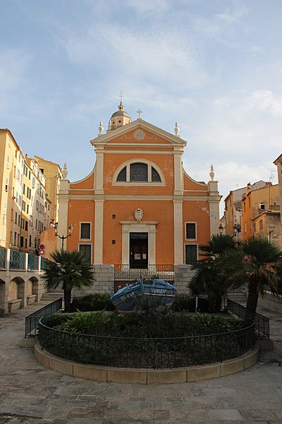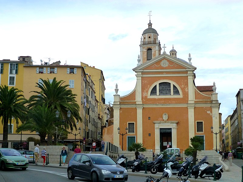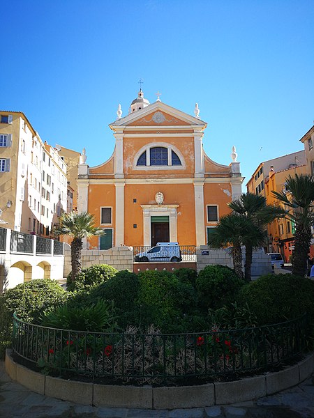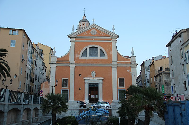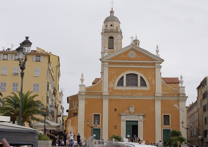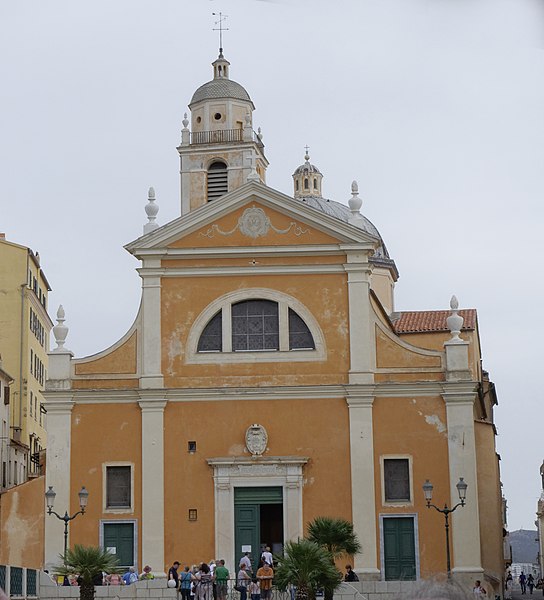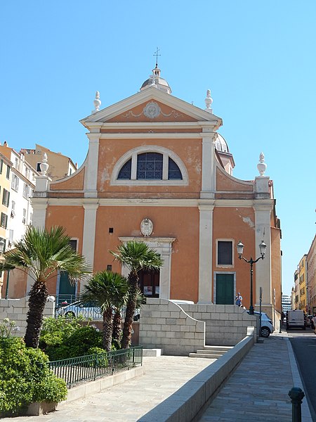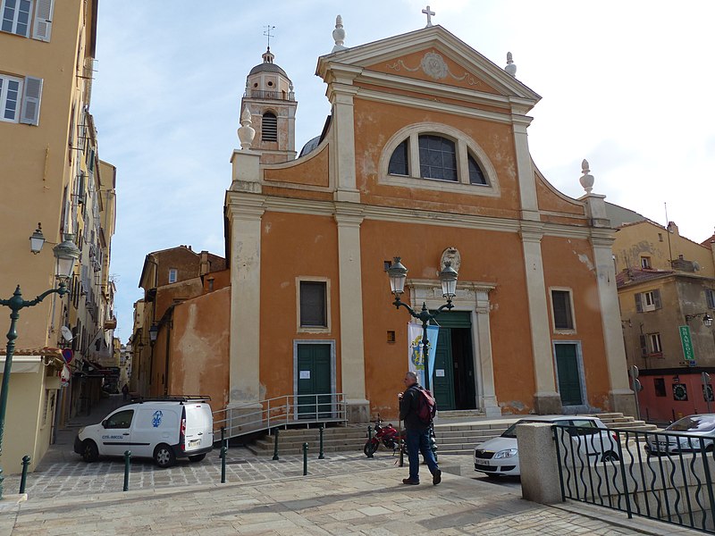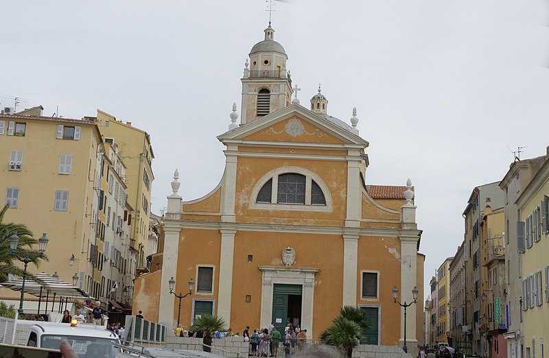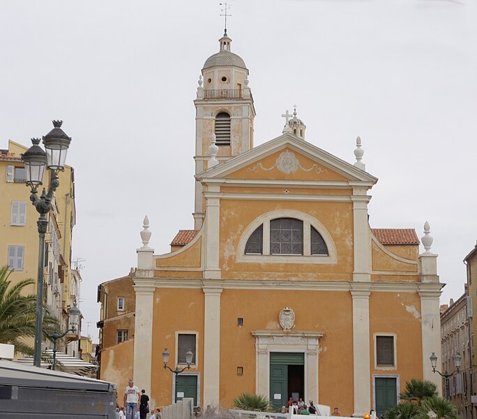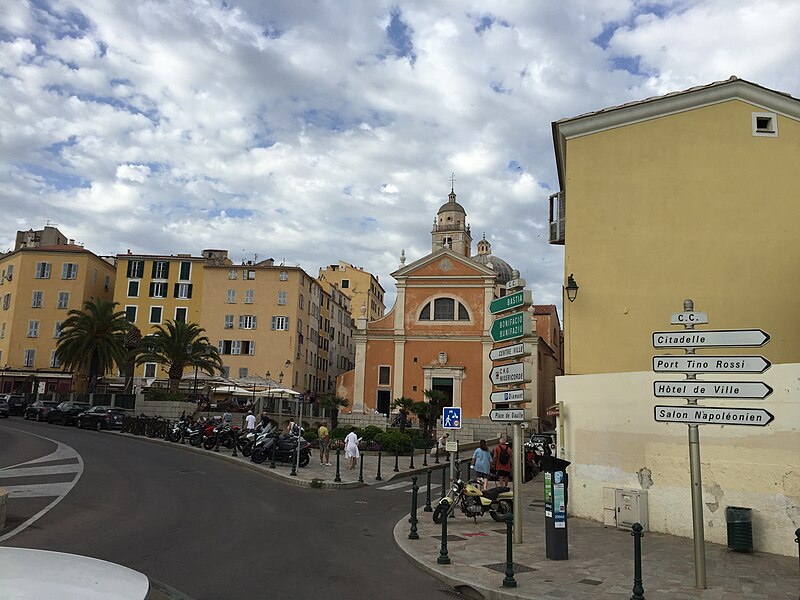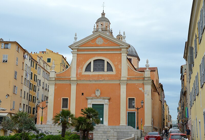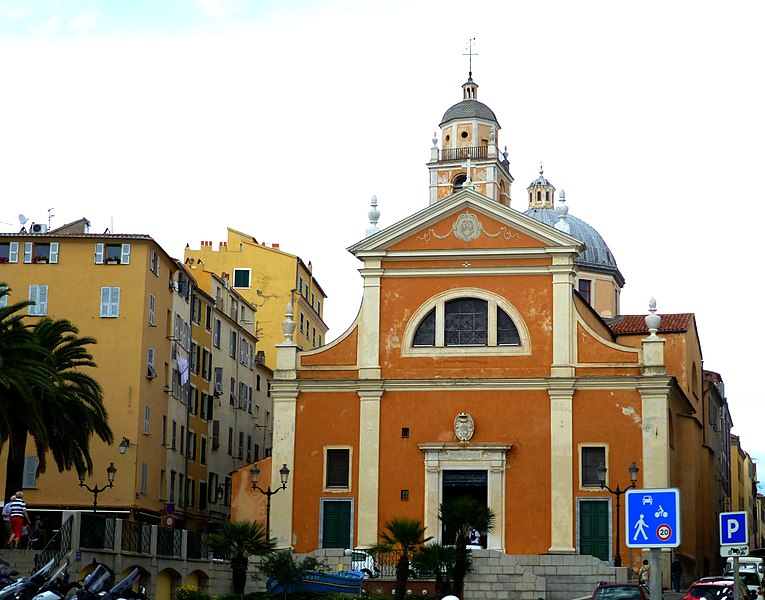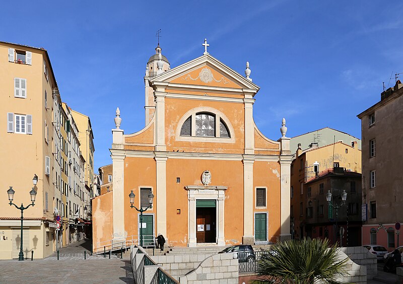 La cathédrale Notre‑Dame‑de‑l'Assomption, dite Santa Maria Assunta, est située dans le quartier de la ville nouvelle génoise d'Ajaccio ; elle est également dédiée à saint Euphrase et à saint François‑Xavier. De style de transition entre Renaissance et baroque, sa construction a commencé en 1582 et le gros œuvre a été achevé en 1593, date inscrite et attribuée à l'évêque Giulio Giustiniani. Napoléon Ier y a été baptisé le 21 juin 1771 et l'édifice a été classé monument historique le 30 octobre 1906.