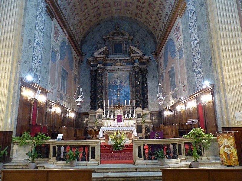 La chapelle de la Vierge au Sacré‑Cœur abrite un retable orné du tableau de Delacroix intitulé La Religion en gloire, offert par Charles X en 1827. Le groupe sculpté de la Vierge de la Miséricorde, commandé à Gênes en 1645 par le capitaine Pietro Orto et initialement placé dans l'église des Jésuites, donna lieu à une dévotion solennelle après une épidémie de choléra en 1656, avec une procession et une fête instituée chaque 18 mars. La chapelle de l'Immaculée‑Conception, située dans la deuxième travée du collatéral sud, a remplacé en 1821 la chapelle de Nostra Signora dei Naviganti, et la chapelle du Rosaire, au bras nord du transept, aurait été consacrée en 1765 par l'évêque Benedetto Andrea Doria.
