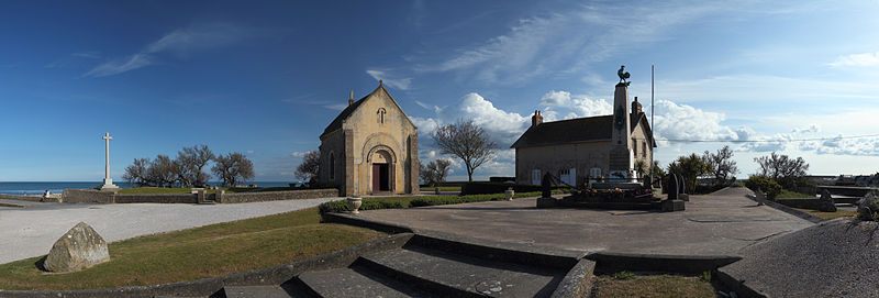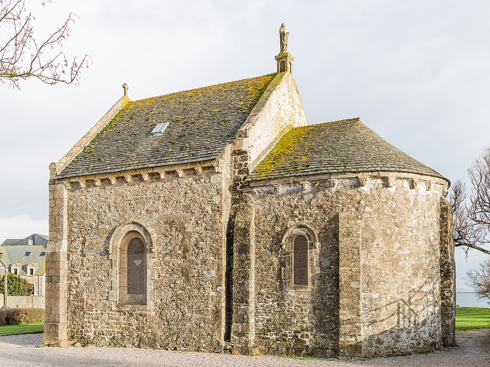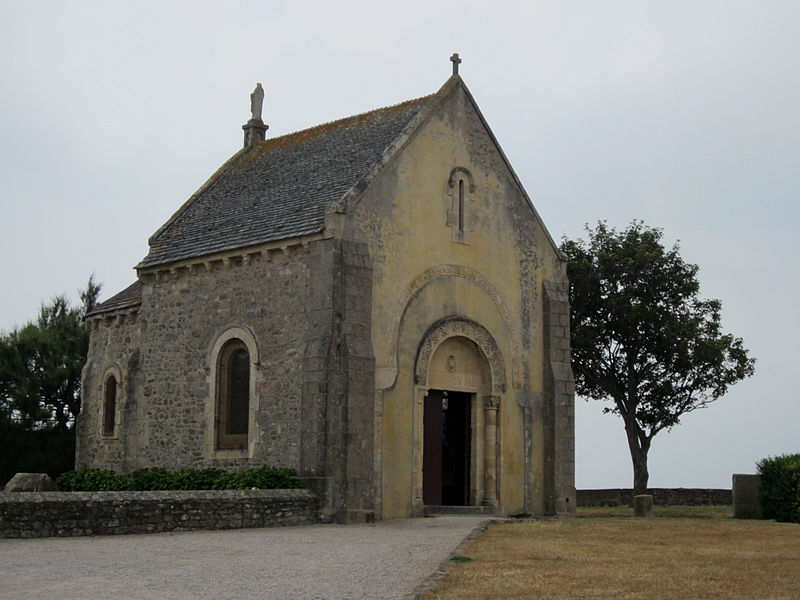 La chapelle conserve le chœur voûté du XIIe siècle et l'abside circulaire romane de l'église paroissiale primitive, édifiée au XIe siècle et démolie en 1864 ; elle était entourée d'un cimetière marin. Vers 1730, une tour carrée coiffée d'une modeste flèche fut ajoutée contre le chœur du côté sud. En 1752, un projet d'agrandissement, motivé par la croissance de la population, fut rejeté par le roi. Ce n'est qu'en 1805 que le curé M. Levéel fit exécuter des travaux : il ajouta une nef latérale, une chapelle côté nord et une sacristie. Le cimetière marin fut reconstitué avec les pierres tombales de la paroisse de Rideauville, rattachée à Saint-Vaast-la-Hougue sous la Révolution. En 1864, lors de l'installation d'une batterie de canons, le chœur aurait dû être rasé mais il fut conservé ; du cimetière il ne subsiste que quelques tombes presque illisibles autour de la chapelle.