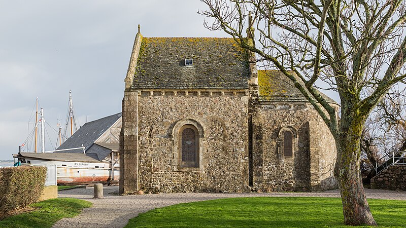 De l'époque romane subsiste principalement l'abside datée des XIe et XIIe siècles. Une partie de l'édifice relève du XIXe siècle, période où les restes furent fermés par un mur percé d'une porte centrale ; au‑dessus de cette porte ont été insérées les armes de l'évêque de Coutances et Avranches Jean‑Pierre Bravard et sa croix de la Légion d'honneur, et sur le listel est inscrit « Disciplus quem diligebat Jesus ». À l'intérieur, on observe des traces de modillons sculptés. Selon Léopold Delisle, l'église comprenait une nef avec bas‑côtés, un petit clocher en ardoise presque central et un chœur voûté entouré de corbeaux grotesques se terminant par une abside plus ancienne que la nef ; le portail ouest, probablement du XIIIe siècle, comportait six petites colonnes soutenant des chapiteaux et présentait une croix en relief, tandis que la nef était soutenue par cinq arches reposant sur des colonnes cylindriques et le chœur était entièrement roman.