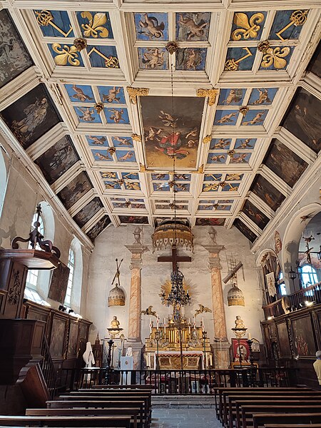 La chapelle des Pénitents Blancs, aménagée dans l'ancien hôtel d'Allègre, se situe au Puy-en-Velay (Haute-Loire) et est classée au titre des monuments historiques par arrêté du 2 octobre 1989. Elle a été créée à la suite de la fondation de la confrérie des Pénitents Blancs en 1584 et a fait l'objet de remaniements aux XVIIe et XVIIIe siècles. Le plafond à caissons de la chapelle a été peint de 1676 à 1679 par les peintres François et Servant ; la menuiserie du portail date de 1679 et est l'œuvre de Claude Crouzet. Au XVIIIe siècle, les lambris ornant les murs ont été réalisés entre 1713 et 1727 et enrichis de tableaux retraçant la vie de la Vierge, peints par Staron et Maurice-Gérard Buffet, tandis que le décor du chœur des confrères fut achevé vers 1735 et que trois grandes arcades furent ouvertes sur la chapelle en 1780. À la Révolution la confrérie fut dissoute et la chapelle devint bien national ; elle fut rendue au culte et la confrérie reconstituée en 1811. L'édifice, constitué par l'ancien hôtel, présente une forme demi-trapézoïdale ; sur la façade est une baie en plein cintre murée témoigne de la construction primitive. L'intérieur est organisé en trois parties : un mur longitudinal sépare, au premier niveau, la chapelle dotée du plafond à caissons de la sacristie ; au deuxième niveau, le chœur des confrères regarde la nef par trois arcades cintrées ; une cloison transversale sépare enfin la chapelle du couloir de dégagement et de l'escalier de la tribune. Le décor notable comprend le plafond à caissons, les lambris ornés de tableaux faisant le tour des murs et le lambris de la tribune, et la sacristie conserve l'intégralité de son mobilier. Dans un oratoire de la chapelle est conservée une Mise au tombeau réalisée par Dominique Kaeppelin. Des études et notices, notamment de Bruno Tollon, Marie-Félicie Pérez et Gilles Chomer, ainsi que des travaux de Jean-Claude Gouy, abordent l'histoire et le décor de la chapelle.