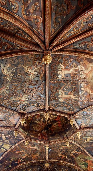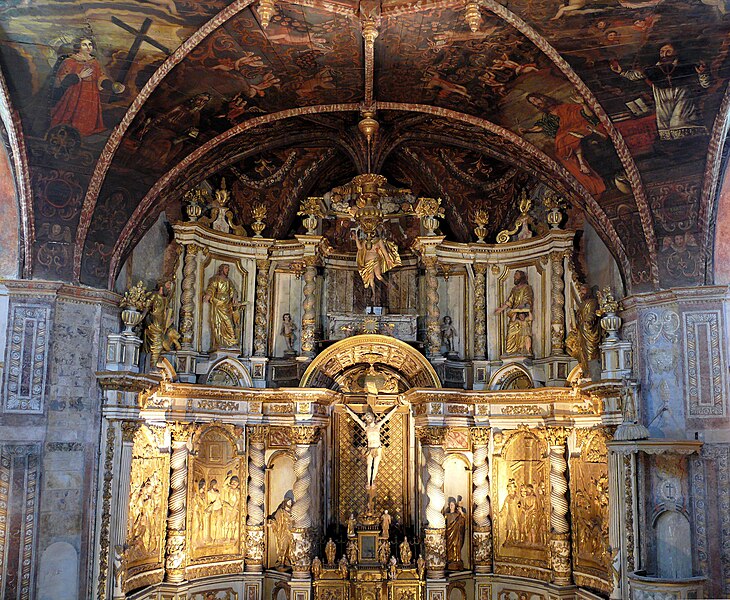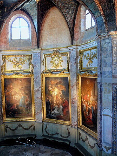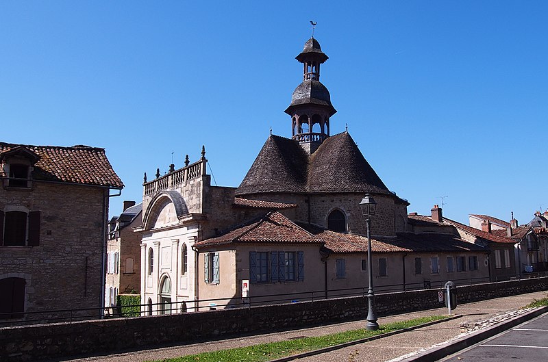 La chapelle des Pénitents Noirs présente un plan en quadrilobe précédé d'un narthex rectangulaire coiffé d'une tribune ; le sanctuaire est couvert d'une voûte en bois à nervures ornée d'arabesques peintes. Dans le renouveau catholique du début du XVIIe siècle, deux confréries de pénitents sont créées à Villefranche-de-Rouergue en 1609 ; celle des Pénitents noirs, fondée le 17 juin, rassemble à ses débuts prêtres, religieux et laïcs, principalement issus de la noblesse de robe, et compte soixante membres la première année. Faute de ressources, les confrères se réunissent d'abord dans la chapelle Saint-Jacques ; les femmes y sont admises en 1682 et le nombre de membres augmente ensuite, atteignant près de trois cents au milieu du XVIIIe siècle. En 1636, Jean-Louis de Garibal fait don de maisons dans le quartier nord‑ouest, et la construction d'une chapelle sur ces biens est proposée en 1641 ; l'évêque autorise le projet et la première pierre est posée en janvier 1642. L'architecte Pierre Didry est chargé des travaux ; il meurt avant leur achèvement et l'architecte Foulé prend la suite, recevant notamment 600 livres pour la voûte et le clocher. La charpente est exécutée par les maîtres Calouffet, Guilfrey, de Marciel et Espinasson, payés douze sous par jour, tandis qu'un ouvrier dit « fils de Charlot » perçoit dix sous ; le bois est offert par des confrères et par l'abbaye de Loc-Dieu. Les couvreurs utilisent vingt charrettes de tuiles et une grande quantité de plomb ; la couverture est aujourd'hui en ardoise et la construction a coûté plus de 4 500 livres. La chapelle est bénie le 27 mai 1671 par l'évêque d'Agde Louis Fouquet, alors relégué à Villefranche-de-Rouergue, et la première messe y est célébrée peu après. Tout au long du XVIIIe siècle, les confrères enrichissent l'édifice : le plafond en bois reçoit des peintures en 1701 signées Guy, un retable en bois doré sculpté sur la Passion est commencé en 1709 et terminé en 1725, et la façade est modifiée avec un fronton circulaire et une balustrade ; ces aménagements entraînent la réduction de l'éclairage par la fermeture partielle des hautes fenêtres. En 1766 la confrérie commande six grands tableaux au peintre Dujon, copies d’œuvres de Boullogne, Jouvenet et Van Loo, qui sont installés dans des cadres en gypserie dorés ; les peintures de la voûte sont restaurées en 1767. La cloche se fissure le 24 février 1717, est refondue le 27 avril et bénite le 2 mai ; après la Révolution la chapelle est vendue comme bien national en 1792 puis rachetée par d'anciens confrères en 1805. En 1808 sont placées sur la tribune des stalles provenant de l'abbaye de Loc-Dieu, attribuées à André Sulpice et datées vers 1480. La confrérie reste active au XIXe siècle puis se dissout en 1905 à la suite de la loi de séparation des Églises et de l'État. Des restaurations récentes ont mis au jour des peintures du XVIIe siècle sur les pilastres ; le choix a été fait de les laisser visibles plutôt que de reconstituer le faux marbre du XVIIIe siècle, ce qui confère à l'intérieur un caractère singulier. La chapelle, classée au titre des monuments historiques le 15 juin 1920, est ouverte à la visite en saison.