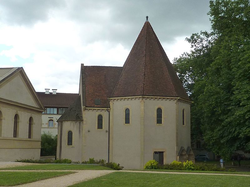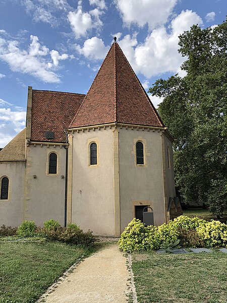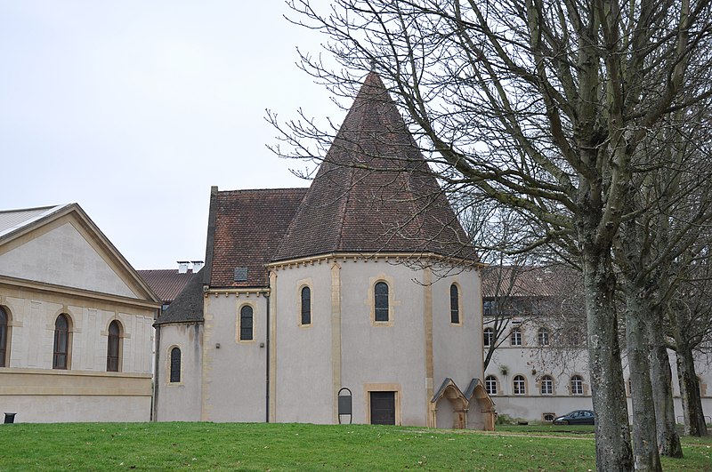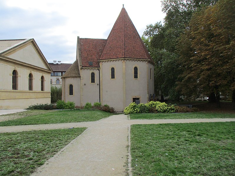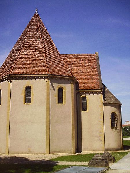 La chapelle est construite entre 1180 et 1220 et constitue l'unique vestige de la commanderie; c'est le seul exemple d'église en rotonde en Lorraine. Son plan central, typiquement templier et rappelant l'école rhénane d'Aix-la-Chapelle ou le Saint-Sépulcre de Jérusalem, marque la composition de l'édifice. L'architecture se situe à la frontière du roman, dont elle conserve les murs épais et les étroites baies en plein cintre, et du gothique, représenté par le voûtement sur croisée d'ogives. La clé de voûte est sculptée d'une colombe du Saint-Esprit et les ogives reposent sur des colonnettes engagées aux chapiteaux ornés, certains de rinceaux à fleur de lys. La chapelle a un plan centré octogonal de 8,30 m de diamètre; elle présente un chœur carré, moins élevé que la nef octogonale, et terminé par une petite abside voûtée en cul-de-four. Les murs épais des sept pans de l'octogone comportent des niches absidioles peu profondes, invisibles depuis l'extérieur, et chaque pan s'ouvre à mi-hauteur sur une baie en plein cintre. Ces particularités rapprochent la chapelle de la rotonde de Saint-Géréon, du transept des Saint-Apôtres de Cologne, du déambulatoire et des bas-côtés de Heisterbach ainsi que de la chapelle de la commanderie de Laon. À l'intérieur, les murs sont couverts de peintures murales partiellement restaurées entre 1910 et 1913 par le peintre Schwarting de Hanovre selon le projet de Hermann Schaper; ces fresques, datées de la première moitié du XIVe siècle, sont fortement dégradées mais encore visibles. À l'extérieur, un pan de l'octogone comporte deux enfeus à arcatures tréflées, plus tardifs, et à l'opposé du chœur la paroi porte la trace d'un ancien voûtement en plein cintre, vestige d'un bâtiment aujourd'hui disparu qui abritait la salle capitulaire décorée de peintures historiées. Sous cette arcature s'ouvre une porte dont le linteau sculpté porte la croix pattée caractéristique des Templiers.