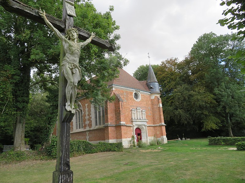 La chapelle des Trois-Étots est un édifice religieux du début du XVIe siècle situé au hameau des Trois-Étots, sur la commune de Cernoy dans le département de l'Oise, en Hauts-de-France. Classée au titre des monuments historiques depuis le 27 juillet 1970, elle se trouve à environ 1 km au nord de Cernoy, à l'entrée du hameau. Construite en briques rouges avec des chaînages en pierre blanche, la chapelle paraît contemporaine de la partie sud-est du château voisin des Trois-Étots. L'édifice comprend une nef unique de trois travées, terminée par un chœur à trois pans. Le mur de la troisième travée côté nord est oblique par rapport à la nef, signe d'une exécution imparfaite. Entre chaque travée, des faisceaux de trois colonnes cylindriques accolées reposent sur un soubassement semi‑circulaire et présentent des bases moulurées composées d'astragale, scotie et boudin. À mi‑hauteur des fenêtres, ces colonnes se terminent par un gorgerin strié, surmonté d'une doucine et d'un quart de rond; les piliers d'angle de la façade ouest et ceux encadrant la fenêtre du fond du sanctuaire ne comportent que deux colonnettes. Seuls ces derniers piliers supportent des départs de voûtes d'ogives; sur le gorgerin du pilier nord‑est et des piliers de la façade ouest apparaît la date 1544, citée par Louis Graves comme époque de la construction. L'éclairage repose sur neuf grandes fenêtres à deux meneaux — huit latérales et une au fond du sanctuaire — encadrées par des arcs en tiers‑point. Le remplage varie selon les travées : dans la première et la troisième travée et au fond, les meneaux déterminent deux petites fenêtres complétées par un écoinçon et une mouchette; aux deuxième et quatrième travées le remplage comporte trois petites fenêtres égales, une ellipse médiane et des soufflets latéraux; toutes sont aveuglées dans leur tiers inférieur. La baie sud de la troisième travée a été entièrement fermée pour la construction d'une sacristie moderne. Les fenêtres conservent des verrières ordinaires; en 1906, toutes sauf la première du côté sud présentaient encore des débris de vitraux anciens, souvent ornés de rinceaux, de petites rosaces et parfois de verres rouges. La verrière du fond du sanctuaire offrait une scène figurée comportant entre autres un soleil, une tête de femme, un cartouche inscrit INRI, et des figures nues et un serpent, que le docteur Parmentier interprétait comme une représentation de la création du monde. L'église est couverte d'un simple plafond enduit de plâtre. Sous la fenêtre de la troisième travée nord se trouve un arc en anse de panier appuyé sur deux colonnes implantées sur le sol, peut‑être l'ouverture d'une chapelle seigneuriale disparue ou une entrée réservée au seigneur, orientée vers le château voisin. Au sud du chœur subsiste une piscine partiellement dissimulée par des boiseries du XVIIIe siècle; elle est encadrée par deux pilastres à bossages aux écoinçons sculptés de rosaces et surmontée d'un arc en anse de panier décoré d'une clé de voûte et d'une coquille formant dôme, entourée de rameaux et de volutes; cet ensemble, d'un intérêt architectural particulier, est daté de la fin du XVIe ou du début du XVIIe siècle. À l'extérieur, les murs de briques sont ponctués de chaînages, d'un cordon au niveau des soubassements, d'un larmier sous les fenêtres et d'une corniche en pierre blanche courant sous le toit. Deux contreforts rectangulaires en briques renforcent l'extrémité du sanctuaire de part et d'autre de la fenêtre du fond. La façade ouest présente un portail Renaissance remarquable en calcaire blanc contrastant avec le fond de briques; il est surmonté d'une baie circulaire. Le portail est limité par un arc en anse de panier dont la voussure porte des moulures et une file de miroirs; une clé de voûte ornée de feuilles d'acanthe décore le centre de l'arc. De part et d'autre de la porte, une colonne galbée devant un pilastre supporte une plate‑bande; chapiteau et impostes sculptés d'oves, dards, perles et rosaces complètent la composition, qui se prolonge par une frise de métopes et triglyphes. Trois niches surmontent la frise, la centrale encadrée de pilastres et couronnée d'un fronton arrondi, les latérales munies de frontons rectangulaires; la façade est renforcée par des contreforts aux angles et par une tourelle circulaire à l'angle opposé, couverte d'ardoises et sommée d'un toit hexagonal.