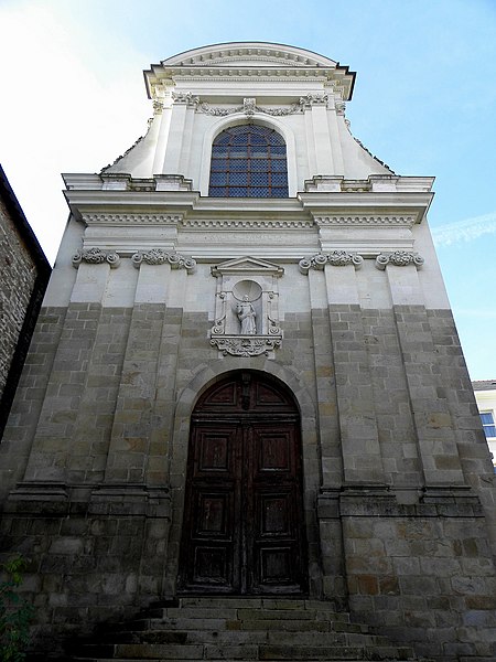 L'ancien couvent des Ursulines, aujourd'hui intégré au collège‑lycée Saint‑François‑Xavier, se situe 3 rue Thiers à Vannes, dans le Morbihan. Le couvent a été construit entre 1627 et 1670 pour accueillir une communauté de religieuses venues de Tréguier. La chapelle, placée sous le vocable de la Sainte Famille, a été édifiée entre 1688 et 1690. À la Révolution, l'ensemble du couvent, à l'exception de la chapelle et de la sacristie, a été vendu à M. Mocquart. En 1802, Mgr Mayneaud de Pancemont a établi un oratoire dans la chapelle. Vers 1850 la propriété passe aux Jésuites et, autour de 1870, la construction d'une nouvelle chapelle plus vaste entraîne la transformation de l'ancienne en bibliothèque et salle d'étude, avec un plancher la divisant en deux niveaux. Le corps principal du couvent a brûlé en 1949 et a été largement rebâti par la suite ; la chapelle a été épargnée par l'incendie, sauf pour le chœur qui paraît amputé. Une gravure de la fin du XIXe siècle montre côté est deux portes en plein cintre aujourd'hui disparues. De l'architecture du XVIIe siècle, la façade est la seule partie ayant conservé son aspect : sa partie inférieure est en granite et sa partie supérieure en tuffeau, plus usée. L'entablement au‑dessus de la porte porte l'inscription SACRAE FAMILIA ; la date de 1690, relevée par Roger Grand en 1921, a disparu, peut‑être lors de la restauration de la façade en 2006. L'absence de renseignements précis rend conjecturaux le couronnement et les amortissements latéraux. La chapelle fait l'objet d'un classement au titre des monuments historiques depuis le 26 juillet 1988.