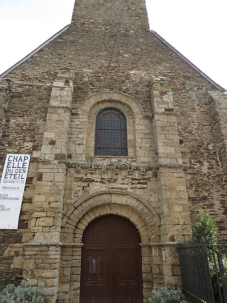 Bâti dans un style roman pur au XIIe siècle, le bâtiment a été édifié entre 1120 et 1130 par les bénédictins de l'abbaye Saint-Nicolas d'Angers sur l'emplacement d'un modeste sanctuaire élevé dans un champ de genêts, d'où le nom Genêteil. L'édifice était consacré à Notre-Dame et porta le nom d'église de la Trinité à partir de 1750. La nef, le transept et le chœur en abside présentent une mesure de 15 m ; au centre une voûte en coupole s'éclairait à l'origine par des fenêtres aujourd'hui murées. La façade ouest se signale par une porte et une grande fenêtre à double archivolte encadrées par des contreforts et surmontées d'un pinacle massif. Les angles sont accentués par des contreforts plats et les fenêtres ont une archivolte surmontée d'un cordon presque sans ornement. Aux XVIe ou XVIIe siècles, la nef fut séparée du transept et du chœur par une cloison qui portait l'autel de la Trinité. Une cloche était encore présente en 1712. Après des contestations entre le principal du collège de Château-Gontier et le curé d'Azé, une sentence du Conseil du Roi du 23 mars 1749 ordonna la séparation de l'église en deux. Jusqu'au XIXe siècle la chapelle a successivement servi de lieu de culte pour des moines, d'annexe d'un collège communal puis de casernement, avant de retrouver une affectation religieuse. Des restaurations peu délicates dans les années 1960 ont dégradé l'édifice. Elle a été sauvée de la démolition en 1973 et classée monument historique en 1980, et a fait l'objet d'une fouille archéologique en 1975.