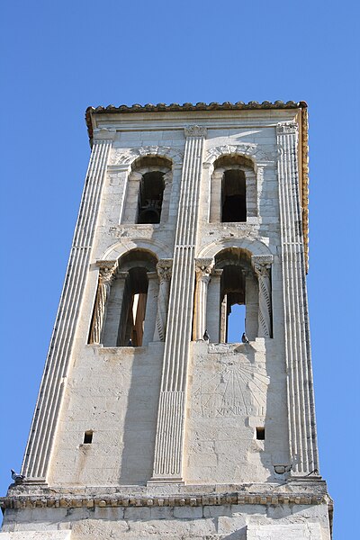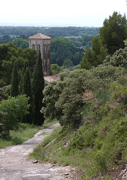 La chapelle Notre-Dame d'Aubune est une chapelle romane située à Beaumes-de-Venise, dans le département de Vaucluse en région Provence-Alpes-Côte d'Azur. Datant des XIe et XIIIe siècles, elle est classée monument historique depuis le 19 novembre 1910. Elle est considérée comme l'un des plus beaux exemples d'art roman provençal inspiré de l'Antiquité, aux côtés d'autres édifices régionaux tels que l'église de Saint-Restitut, le prieuré du Val des Nymphes près de La Garde-Adhémar, la cathédrale Notre-Dame-des-Doms d'Avignon, la chapelle Saint-Quenin de Vaison-la-Romaine et l'église Notre-Dame-du-Lac du Thor. Dominée par le Rocher du Diable, la chapelle se situe à l'ouest du village, au pied de la colline des « grottes d'Ambrosi », au sud‑ouest des Dentelles de Montmirail. On y accède à pied depuis le nord par deux sentiers descendant de la colline, ou en voiture depuis le village ou la route départementale par un chemin franchissant le canal de Carpentras ; deux chemins de grande randonnée de pays passent également à proximité. La tradition populaire associe la chapelle à une légende selon laquelle Charlemagne ou Charles Martel l'aurait fait élever après une victoire contre les Maures, au lieu‑dit Cimetière des Sarrasins. Selon une autre légende, le Diable aurait détaché un rocher pour écraser l'édifice mais la Vierge l'aurait arrêté ; la colline au‑dessus porte encore un lieu nommé « Pierre du Diable ». Une énigme locale affirme que la chapelle a « seize baies et quinze cent cloches », accompagnée d'une phrase énigmatique transmise dans le village : « Vingt cent mis l'âne dans un près et cent vingt dans l'autre » (Vincent mit l'âne dans un pré et s'en vint dans l'autre). Sur le plan architectural, le chevet et le clocher relèvent de l'époque romane : le chevet est caractéristique du premier art roman tandis que le clocher appartient au début du XIIIe siècle. Le clocher carré présente une décoration inspirée de l'Antiquité, avec des pilastres cannelés sur toute sa hauteur, des colonnettes cannelées et des chapiteaux à feuilles d'acanthe, et sa silhouette élancée contribue à la valeur plastique de l'édifice en le faisant se détacher dans la plaine. Le chevet comprend une travée de chœur édifiée en moellon avec des chaînages d'angle en pierre de taille, prolongée par une triple abside très simple, typique du premier art roman. L'abside centrale et les deux absidioles semi‑circulaires, construites en moellon et couvertes de lauzes, sont percées chacune d'une fenêtre absidiale à simple ébrasement ; celle de l'abside centrale est surmontée d'un larmier sculpté en pierre de taille. La façade orientale est percée d'un oculus situé dans l'alignement de l'abside centrale, et la maçonnerie de la travée de chœur et du chevet montre de nombreux trous de boulin laissés par les échafaudages. Sur le côté sud du mur oriental du transept se lit la marque de tâcheron d'Hugues, dit VGo : ce sigle, formé d'un grand V, d'un G en faucille et d'un petit o, figure la signature du tailleur de pierre qui fut parmi les premiers à la porter au cours de la seconde moitié du XIIe siècle. Guy Barruol relève que les noms d'appareilleurs écrits en toutes lettres sont rares en Provence et cite plusieurs exemples locaux où ils apparaissent, notamment à Saint-Gabriel de Tarascon, à l'abbaye de Sénanque, à Saint-Honorat des Alyscamps, à Notre-Dame d'Auton au Pègue, à Carpentras, à Saint-Andiol, à Arles, à Saint-Trophime d'Arles, à Saint-Paul-Trois-Châteaux et au prieuré de Carluc près de Céreste. Le site, christianisé très tôt, a livré un autel tabulaire paléochrétien daté des IVe ou Ve siècles ainsi qu'une épitaphe à Epyminia, jeune chrétienne morte en 485 ; sa pierre tombale est conservée au musée lapidaire de Carpentras. La chapelle a été restaurée au XVIIe siècle après les guerres de Religion, période dont date l'ermitage, et elle a fait l'objet d'une importante campagne de restauration en 2007.