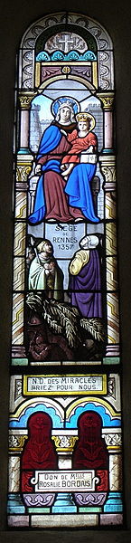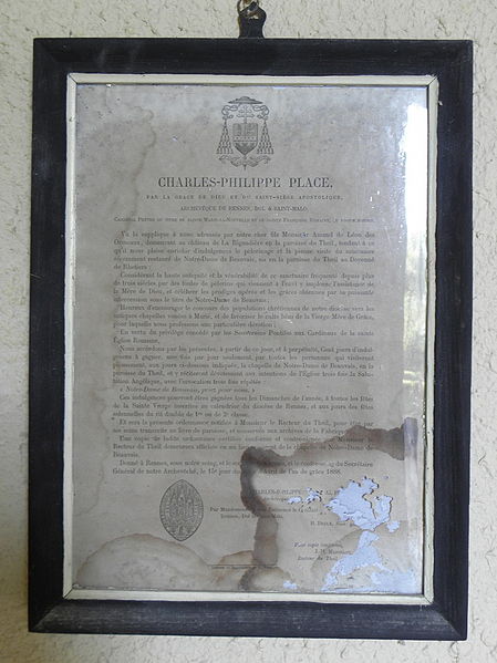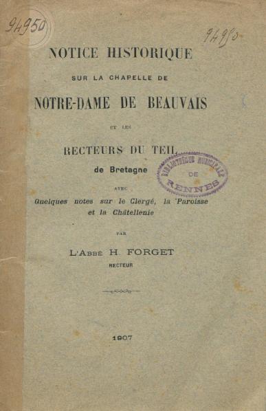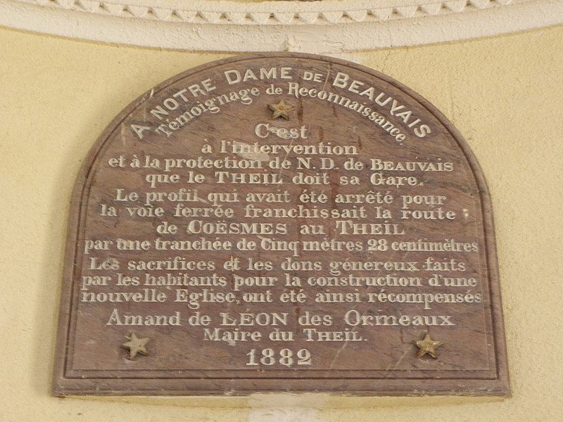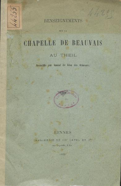 La chapelle Notre‑Dame‑de‑Beauvais est un lieu de culte marial situé au lieu‑dit Beauvais, au Theil‑de‑Bretagne, en Ille‑et‑Vilaine, en Bretagne. La chapelle et sa croix ont été inscrites aux monuments historiques le 18 mars 2013. Une chapelle frairienne existait déjà à cet emplacement dès le XVe siècle. L'édifice actuel, de style néo‑roman, a été construit entre 1893 et 1894 par l'architecte Henri Mellet. Mellet reprend presque à l'identique la structure de la chapelle Sainte‑Croix de l'abbaye de Montmajour à Arles et utilise des matériaux polychromes. La construction associe granite et schiste à dominante grise, atténuée par l'emploi de briques rouges. La chapelle adopte un plan centré qui s'organise autour d'une croisée de transept de section carrée coiffée d'une coupole, elle‑même surmontée d'un petit pyramidon porté par un campanile. Quatre absidioles semi‑circulaires cantonnent le massif central. L'élévation est composée d'un seul étage en dehors de la coupole ; le sanctuaire n'est pas orienté et une sacristie prolonge le chœur. Une courte nef d'une travée forme un vestibule à l'est. L'extérieur se distingue par une polychromie de matériaux — tuffeau blanc, ardoise bleue, brique rouge, granite gris et moellons ocre — ainsi que par une stéréotomie variée qui hiérarchise les éléments architecturaux. À l'intérieur, le décor est réduit : une colonnade en pierre calcaire et une frise soulignent les baies, tandis que les murs sont traités au lait de chaux afin de mettre en valeur le mobilier. La chapelle est éclairée par de longues fenêtres étroites ornées de huit verrières figurant des apparitions mariales : Notre‑Dame du Folgoët (don de Mlle Marie Ménard), Notre‑Dame de La Salette (don des mesdemoiselles Desvaux), Notre‑Dame de Pontmain, Notre‑Dame des Miracles (don de Mlle Rosalie Bordais), Notre‑Dame de Chartres (don des mesdemoiselles Morault), Notre‑Dame de Lourdes, Notre‑Dame de France (don de Mlle Léone Hamelin) et Notre‑Dame de Lorette (don des mesdemoiselles Samuel Denis). Une croix monumentale, peut‑être du XVIIe siècle, se situe au nord‑est de la chapelle. Le bâtiment se trouve à la sortie sud du bourg du Theil‑de‑Bretagne, le long de la route départementale 99 en direction de Coësmes, à une altitude d'environ 87 mètres.