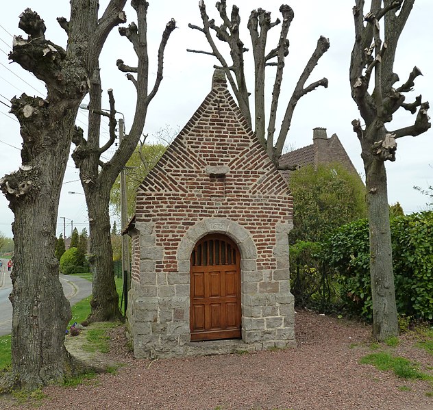 La chapelle Notre-Dame de Bonsecours, située à Écaillon dans le Nord, est une petite construction catholique d'allure modeste datée avec certitude de 1673. Érigée en action de grâce, elle commémore la reconnaissance d'un paroissien sauvé d'une noyade par l'intervention miraculeuse de la Vierge Marie ; son vocable renvoie également à un lieu de pèlerinage proche, de l'autre côté de la frontière, à Bonsecours. L'édifice, d'un plan approximativement quadrangulaire et d'un seul niveau, mesure environ 4 mètres de haut, 5 mètres de long et 2,73 mètres de large, et se termine par une abside à trois pans coupés. Il est construit en matériaux de pays : un soubassement d'environ un mètre en grès extrait des carrières de Lewarde et une élévation en brique. La façade, de 4,5 m sur 2,73 m, présente une porte unique sous un arc en plein cintre simplement chanfreiné jusqu'au soubassement ; la clé de voûte porte la date de 1673 et, au-dessus, une petite niche coiffée d'un linteau en grès. Le pignon est réalisé en briques disposées en épis et le toit, à deux appentis, est couvert de tuiles mécaniques. Deux oculi latéraux, aujourd'hui murés, éclairaient autrefois l'intérieur. Le mobilier et l'aménagement intérieur illustrent l'art de la Contre-Réforme, avec un important retable en bois daté de 1673, composé d'un édicule soutenu par deux colonnes torses et orné de guirlandes, de fleurs, de chapiteaux et d'angelots de style baroque. Ce retable, qui accueillait une statue polychrome de la Vierge à l'Enfant aujourd'hui déposée à la mairie d'Écaillon, dépasse le niveau de l'art populaire et confère à la chapelle un intérêt artistique marqué. L'ensemble, inséparable de l'édifice, renforce la valeur historique et patrimoniale du site, inscrit aux monuments historiques par arrêté du 31 décembre 1999.