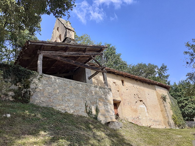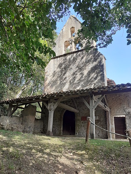 La chapelle, citée dès le XIIIe siècle et ancien lieu de pèlerinage, présente une nef rectangulaire charpentée. Sur le côté, une petite porte au linteau en accolade, terminée par une fleur de lys, s'ouvrait sur le cimetière. Au fond, le chœur polygonal est voûté en nervures qui s'appuient sur des culs-de-lampe décorés naïvement : un loup, des têtes de biches accompagnées d'un arc, et une tête couronnée posée sur un corps de poisson ; ces nervures convergent vers une clé ornée de l'écusson des Montesquiou. Un porche reposant sur des poteaux de bois, dont l'un porte des moulures du XVe siècle, a dû être remanié.