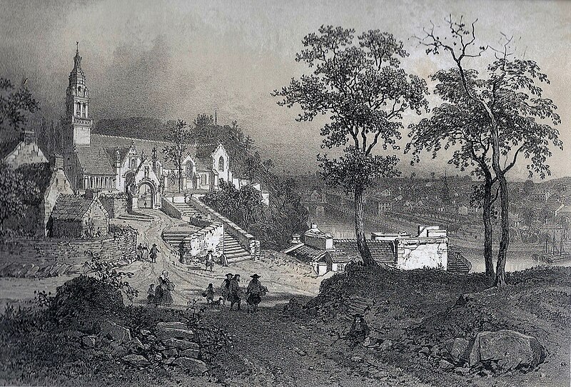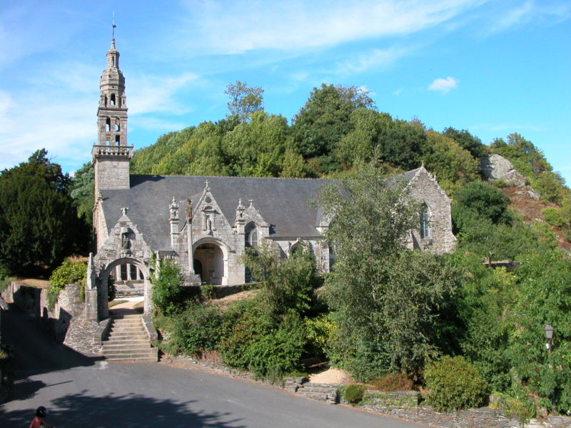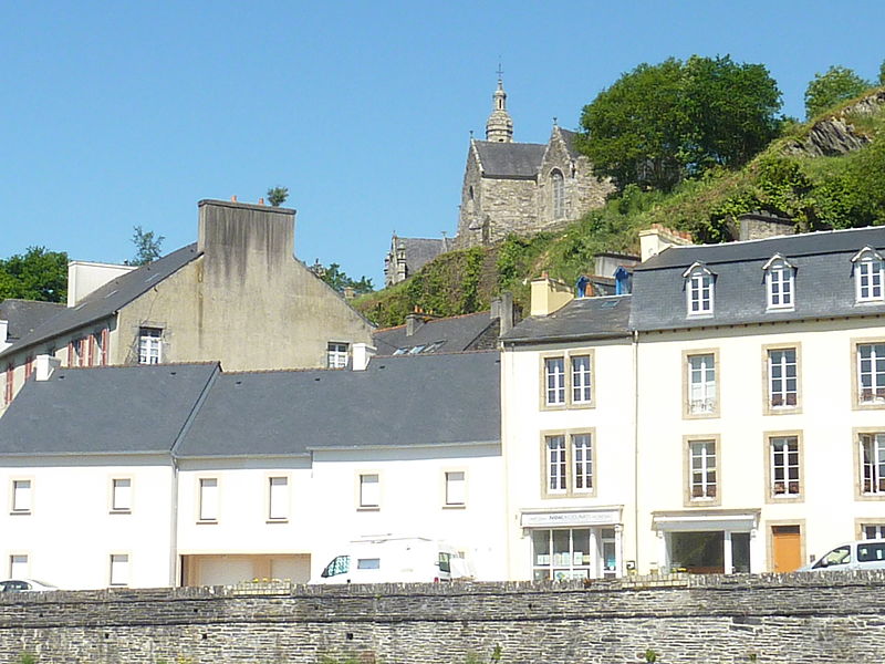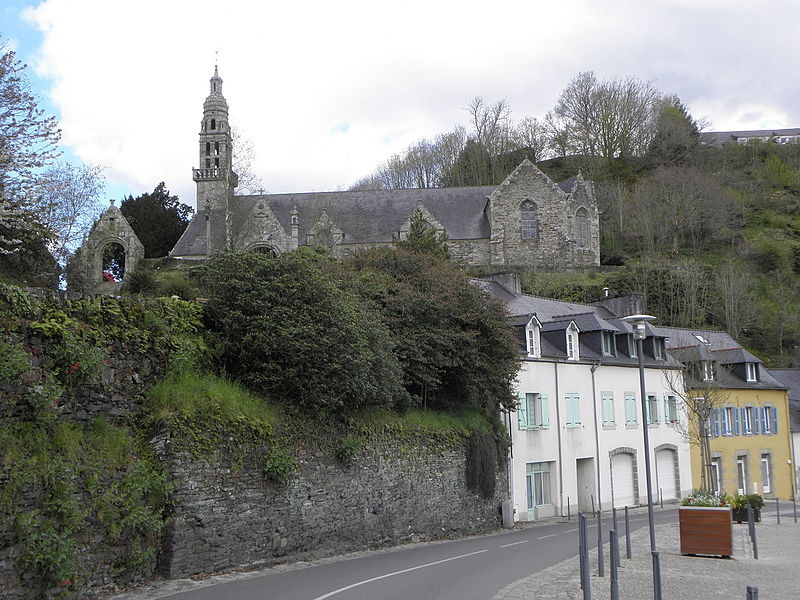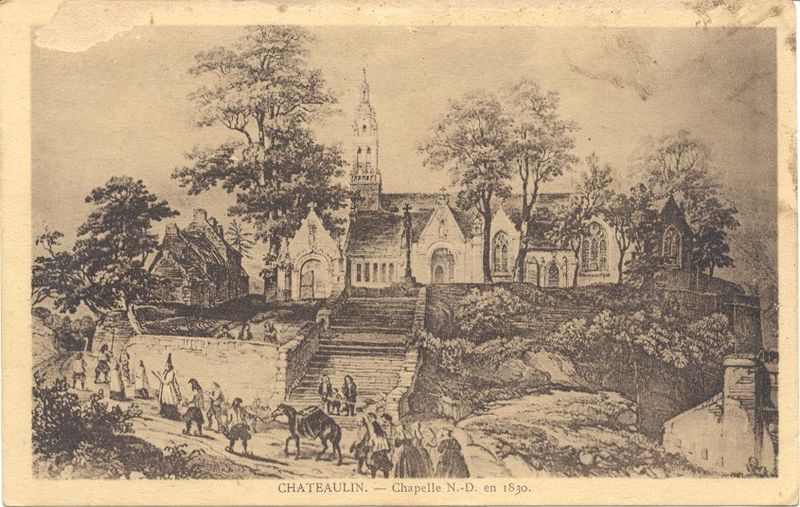 La chapelle Notre‑Dame de Châteaulin, dans le centre du Finistère, domine l'Aulne depuis un enclos paroissial implanté sur une butte jadis fortifiée. Le cartulaire de l'abbaye de Landévennec la désigne au XIe siècle sous le nom de « Montagne de Nin » près du fleuve Hamn ; l'édifice conserve des parties anciennes remontant au début du XIIIe siècle. Construite à flanc de coteau sur la face nord‑ouest de la butte, elle surplombe le cours canalisé de l'Aulne de 35 mètres. Cette ancienne chapelle castrale fut église paroissiale d'un petit village voisin — dont subsiste le lieu‑dit « Le Vieux‑Bourg » — avant d'être déclassée à la fin du XVIIe siècle au profit de l'église Saint‑Idunet. Malgré des transformations sur cinq siècles, l'édifice garde une unité qui en fait un petit chef‑d'œuvre de l'architecture bretonne.