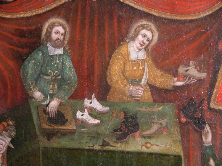 Sur le côté droit du chœur, une dalle funéraire en granit porte l'inscription « CI GIT JOTHANE DE TREZIGUIDY VICONTESSE DU FAOU » ; née sur les terres de Trésiguidy entre Châteaulin et Pleyben, mariée à Morvan, vicomte du Faou, elle mourut en 1324 et sa tombe fut mise au jour lors des travaux de 1860. Enfin, un tableau représentant les saints Crépin et Crépinien, œuvre de Jean Le Moign de Saint‑Renan commandée en 1664 par la confrérie des cordonniers et tanneurs de Châteaulin, a été restauré en 1998 ; il raconte le martyre des deux saints en huit cartouches et les montre dans leur atelier, avec en bas à droite le donateur et sa femme probablement représentés.