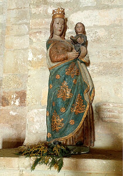 Le plan suit une croix latine orientée est‑ouest; l'édifice est voûté par une charpente. La nef rectangulaire à vaisseau unique est dallée en damier noir et blanc. La croisée du transept est portée par des arcs en tiers point reposant sur des supports complexes composés de multiples colonnes engagées; certains auteurs y voient une parenté d'inspiration romane tandis que d'autres estiment que ces supports datent des XVe–XVIe siècles, une corbeille portant l'arc triomphal pouvant toutefois être un réemploi sculpté de style plus ancien. Le chœur à chevet plat est éclairé par une fenêtre gothique à remplages.