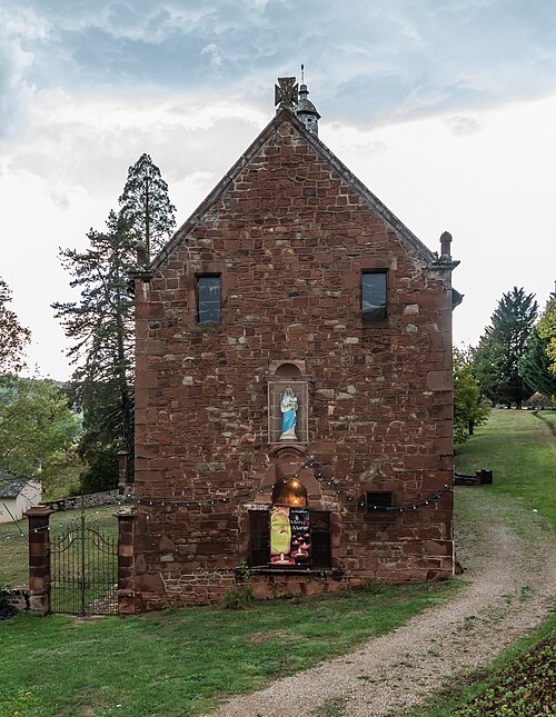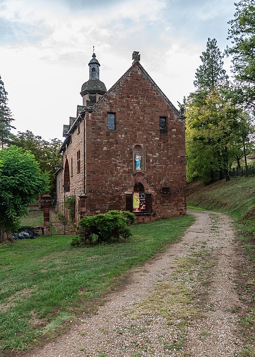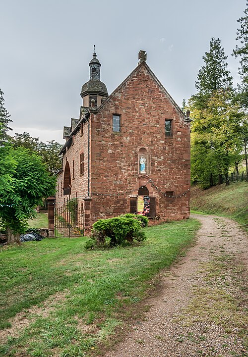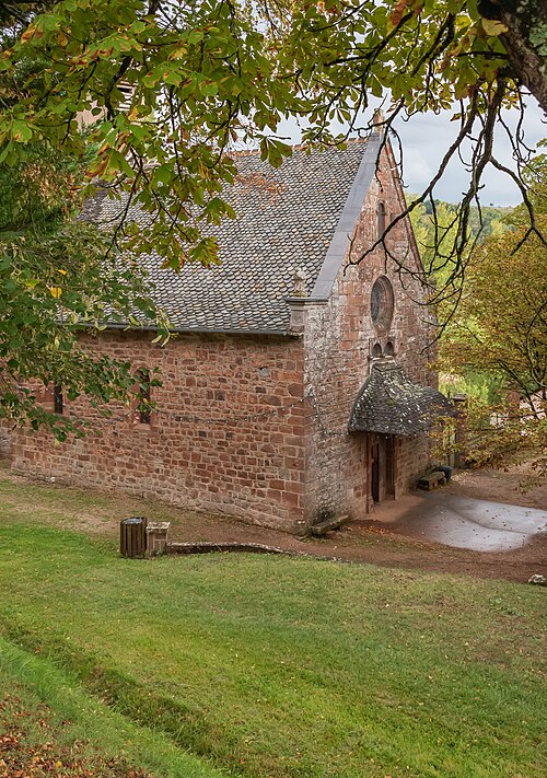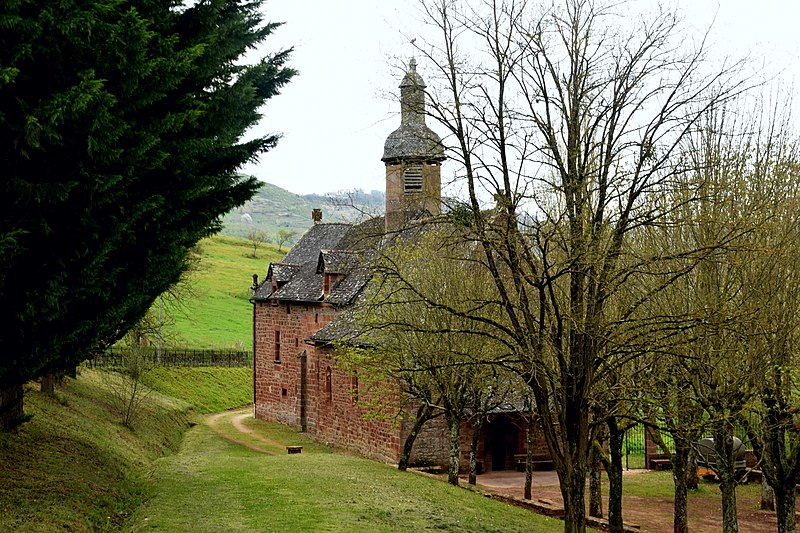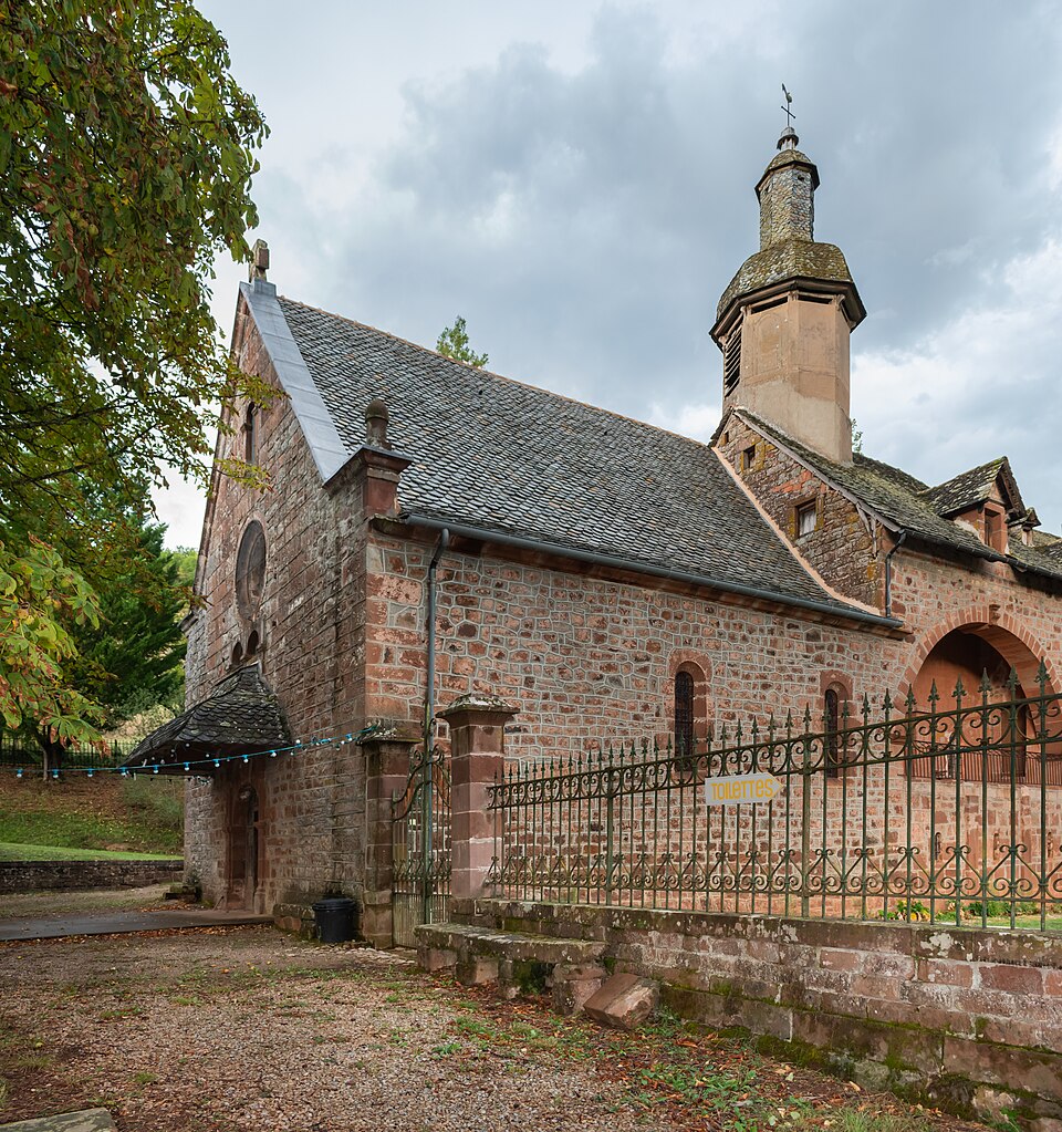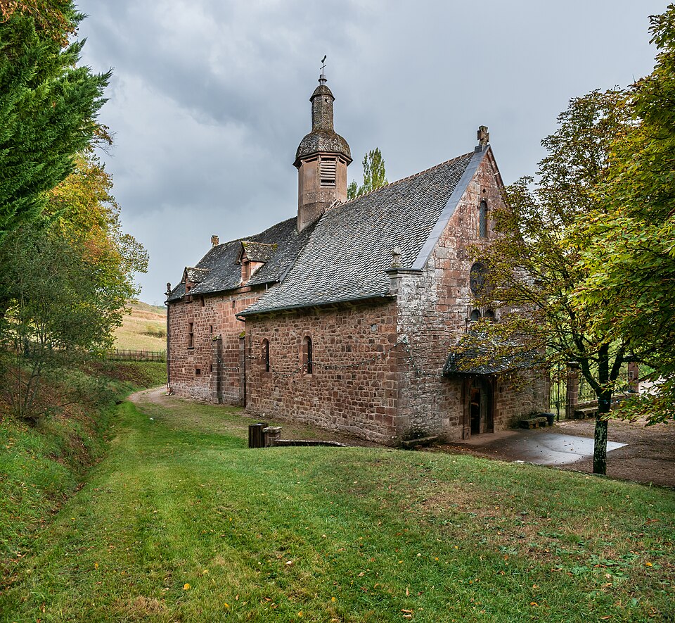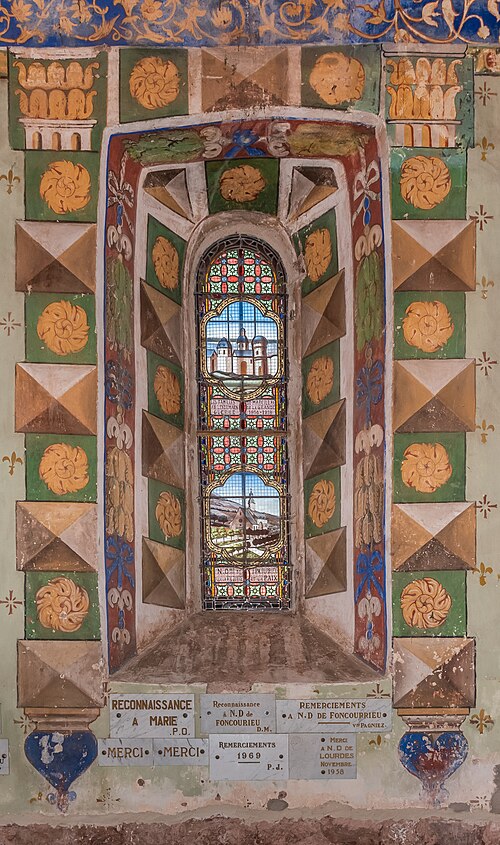 La chapelle Notre‑Dame de Foncourrieu, située à la sortie de Marcillac‑Vallon sur la route Notre‑Dame de Foncourrieu, est un édifice de pèlerinage implanté dans l'Aveyron. Elle est composée d'un chœur roman, d'une nef du XIVe siècle et d'un logis de prieur relié à la chapelle par une tribune ; ce logis, bâti vers 1650, dépendait de l'abbaye de Conques. La tradition rapporte qu'une dame, attaquée par un serpent en 1338, invoqua la Vierge qui lui apparut et la délivra ; en remerciement la chapelle aurait été élevée en ce lieu. La première mention documentaire remonte à 1351. À la fin du XIVe siècle le sanctuaire fut agrandi par la construction de la nef et un service de léproserie fut instauré, financé en partie par Guillaume de Laparra et approuvé par les autorités ecclésiastiques et civiles. La chapelle fut consacrée en 1389, la date 1388 figurant sur les arcs de la voûte. Aux XVIIe et XVIIIe siècles, la chapelle et le logis du prieur furent ornés de peintures ; la voûte du chœur porte un décor daté de 1680 composé de quatre cartouches en l'honneur de la Vierge. En 1703 un moine de Conques peignit les voûtes lambrissées de la nef et le revers de la porte. Le logement du prieur conserve une mosaïque de panneaux peints à figures géométriques et fonds alternés, datée du XVIIe siècle. La chapelle et ses dépendances étaient entourées d'un enclos muni d'un portail et d'une grille en fer forgé ; un chemin de pèlerinage marqué de losanges est inclus dans cet ensemble. Des vœux paroissiaux et des processions y furent institués à partir du milieu du XVIIe siècle, notamment une procession annuelle le 15 août et, à partir de 1675, une procession le premier samedi de mai pour la conservation des récoltes. La chapelle fut pillée en 1793 et vendue par les Jacobins, et la statue de la Vierge fut mutilée avant qu'une partie ne soit dissimulée par une fidèle. Rachetée par les fidèles en 1804, la chapelle rouvrit au culte et la statue, partiellement reconstituée, retrouva sa place après une restauration effectuée en 1887 par le sculpteur François Mahoux, année où la tribune fut également reconstruite. La statue de la Vierge, en bois peint du XIVe siècle et haute de 1,20 m, représente Marie adolescente dans l'attitude du Magnificat, une main sur le cœur et l'autre levée ; elle porte une robe rouge ornée de grappes de raisin et un manteau bleu. Réplique des orantes de Carthage, cette image est particulièrement vénérée par les vignerons, les familles et la population du bassin houiller qui lui confient la protection des enfants et des cultures. La statue reçut une couronne lors d'une cérémonie solennelle le 30 juin 1901, après un décret de couronnement du Saint‑Siège. La Vierge participa à l'ostension des Madones du Rouergue à Rodez en 1951 ; une petite bannière bleue commémore cet événement. Les peintures de la voûte du chœur ont été restaurées en 1983 et, en 1988, la chapelle et le logement du prieur furent inscrits à l'inventaire supplémentaire des monuments historiques. À l'intérieur, la chapelle présente trois retables : deux dans la nef consacrés à l'Annonciation et à la Nativité, et un retable de chœur surmonté d'une statue de la Vierge, flanqué de figures comme sainte Anne et saint Jean‑Baptiste. Quatre médaillons dorés figurent l'Annonciation, la Visitation, la Nativité et l'Assomption. La voûte de la nef est divisée en deux cents carrés peints représentant Marie, le Christ ou divers saints, et les murs sont couronnés d'une frise aux blasons des abbés de Conques et des bienfaiteurs. Des pèlerinages y sont toujours célébrés : celui des paroisses du Vallon le dimanche précédant l'Ascension, le pèlerinage de Notre‑Dame des Bourgeons et des enfants le lundi de Pentecôte, et un pèlerinage des malades et handicapés le dernier dimanche de juin.