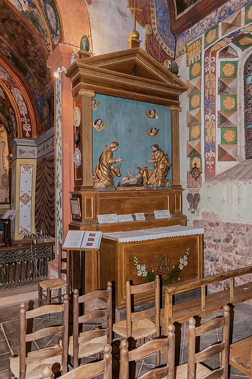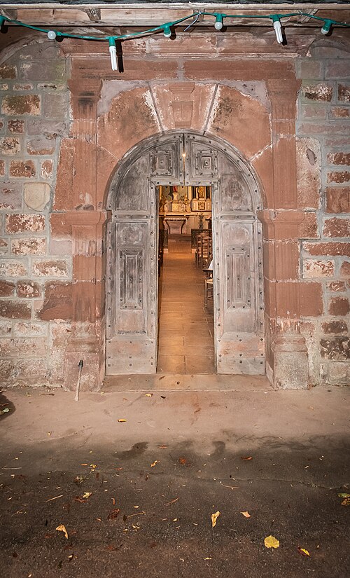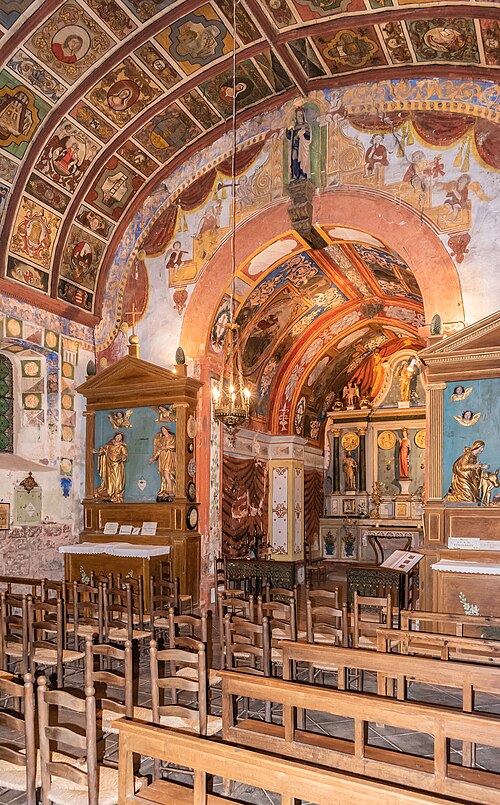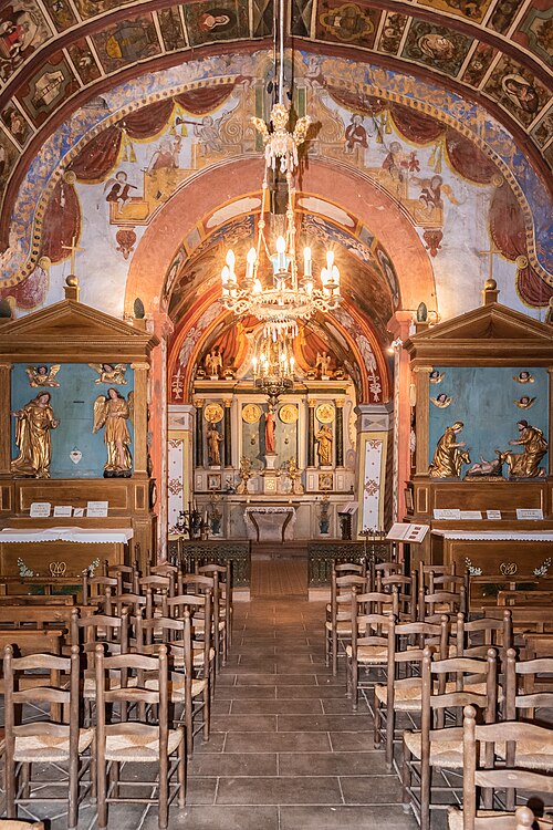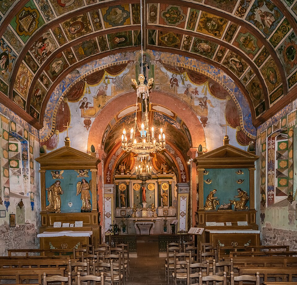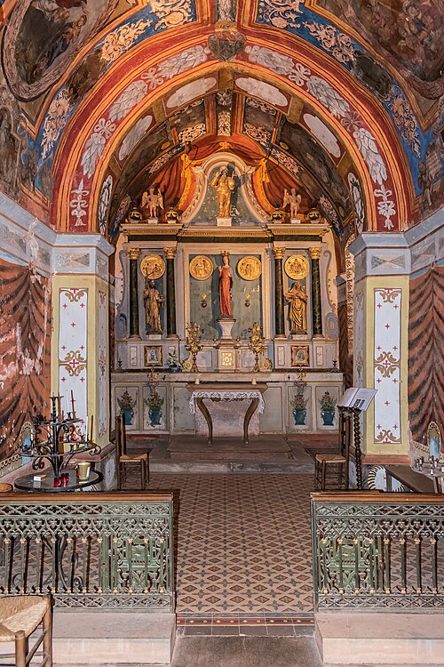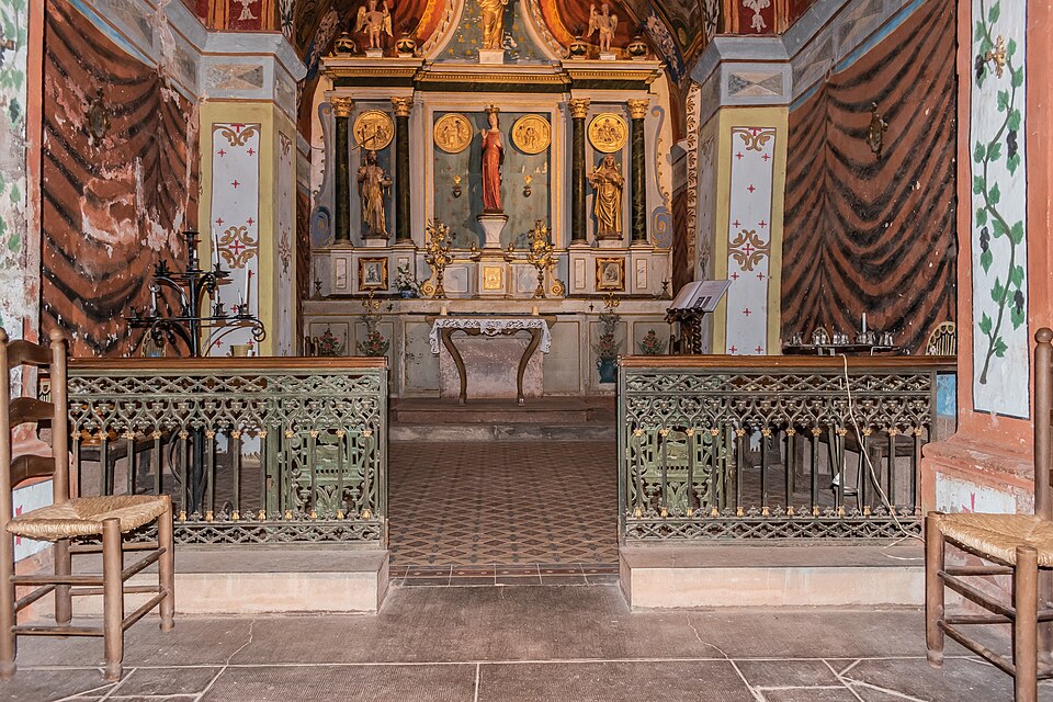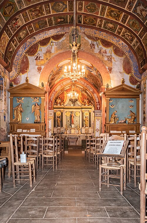 La chapelle Notre‑Dame de Foncourrieu, située à la sortie de Marcillac‑Vallon sur la route Notre‑Dame de Foncourrieu, est un édifice de pèlerinage implanté dans l'Aveyron. Elle est composée d'un chœur roman, d'une nef du XIVe siècle et d'un logis de prieur relié à la chapelle par une tribune ; ce logis, bâti vers 1650, dépendait de l'abbaye de Conques. La tradition rapporte qu'une dame, attaquée par un serpent en 1338, invoqua la Vierge qui lui apparut et la délivra ; en remerciement la chapelle aurait été élevée en ce lieu. La première mention documentaire remonte à 1351. À la fin du XIVe siècle le sanctuaire fut agrandi par la construction de la nef et un service de léproserie fut instauré, financé en partie par Guillaume de Laparra et approuvé par les autorités ecclésiastiques et civiles. La chapelle fut consacrée en 1389, la date 1388 figurant sur les arcs de la voûte. Aux XVIIe et XVIIIe siècles, la chapelle et le logis du prieur furent ornés de peintures ; la voûte du chœur porte un décor daté de 1680 composé de quatre cartouches en l'honneur de la Vierge. En 1703 un moine de Conques peignit les voûtes lambrissées de la nef et le revers de la porte. Le logement du prieur conserve une mosaïque de panneaux peints à figures géométriques et fonds alternés, datée du XVIIe siècle. La chapelle et ses dépendances étaient entourées d'un enclos muni d'un portail et d'une grille en fer forgé ; un chemin de pèlerinage marqué de losanges est inclus dans cet ensemble. Des vœux paroissiaux et des processions y furent institués à partir du milieu du XVIIe siècle, notamment une procession annuelle le 15 août et, à partir de 1675, une procession le premier samedi de mai pour la conservation des récoltes. La chapelle fut pillée en 1793 et vendue par les Jacobins, et la statue de la Vierge fut mutilée avant qu'une partie ne soit dissimulée par une fidèle. Rachetée par les fidèles en 1804, la chapelle rouvrit au culte et la statue, partiellement reconstituée, retrouva sa place après une restauration effectuée en 1887 par le sculpteur François Mahoux, année où la tribune fut également reconstruite. La statue de la Vierge, en bois peint du XIVe siècle et haute de 1,20 m, représente Marie adolescente dans l'attitude du Magnificat, une main sur le cœur et l'autre levée ; elle porte une robe rouge ornée de grappes de raisin et un manteau bleu. Réplique des orantes de Carthage, cette image est particulièrement vénérée par les vignerons, les familles et la population du bassin houiller qui lui confient la protection des enfants et des cultures. La statue reçut une couronne lors d'une cérémonie solennelle le 30 juin 1901, après un décret de couronnement du Saint‑Siège. La Vierge participa à l'ostension des Madones du Rouergue à Rodez en 1951 ; une petite bannière bleue commémore cet événement. Les peintures de la voûte du chœur ont été restaurées en 1983 et, en 1988, la chapelle et le logement du prieur furent inscrits à l'inventaire supplémentaire des monuments historiques. À l'intérieur, la chapelle présente trois retables : deux dans la nef consacrés à l'Annonciation et à la Nativité, et un retable de chœur surmonté d'une statue de la Vierge, flanqué de figures comme sainte Anne et saint Jean‑Baptiste. Quatre médaillons dorés figurent l'Annonciation, la Visitation, la Nativité et l'Assomption. La voûte de la nef est divisée en deux cents carrés peints représentant Marie, le Christ ou divers saints, et les murs sont couronnés d'une frise aux blasons des abbés de Conques et des bienfaiteurs. Des pèlerinages y sont toujours célébrés : celui des paroisses du Vallon le dimanche précédant l'Ascension, le pèlerinage de Notre‑Dame des Bourgeons et des enfants le lundi de Pentecôte, et un pèlerinage des malades et handicapés le dernier dimanche de juin.
