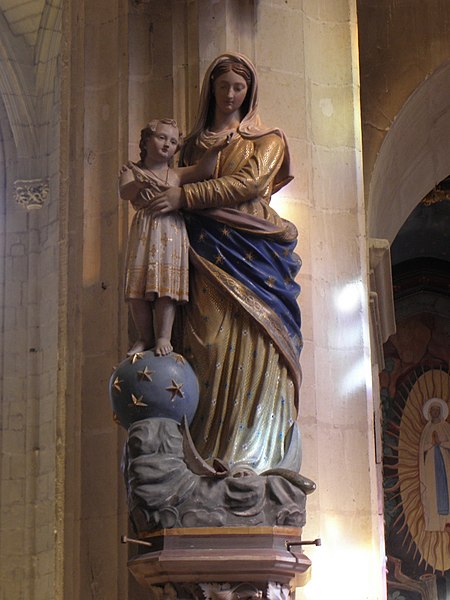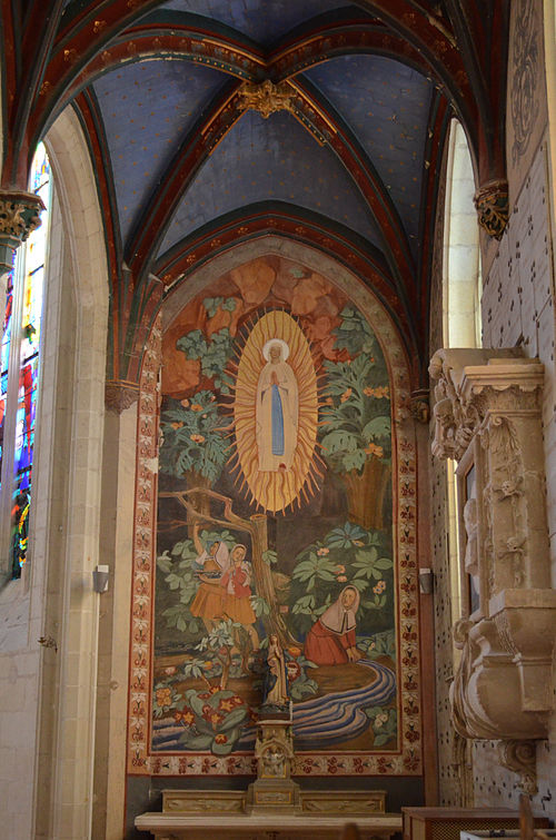 Le décor comporte des vitraux évoquant notamment le mariage de Gaston d'Orléans et de Marie de Montpensier ; le chœur présente trois ensembles de verrières représentant à gauche l'Assomption de Marie, au centre le couronnement de la Vierge accompagné en partie basse de scènes telles que la fuite en Égypte, Jésus retrouvé au temple, la crucifixion avec Marie et saint Jean, et la dormition, et à droite l'Immaculée Conception avec en partie basse la représentation du péché originel, d'Adam et Ève et du fruit défendu, du serpent et de l'expulsion du jardin d'Éden. Parmi les chapelles intérieures, la chapelle dite du suffrage comporte un retable, la chapelle de la Vierge abrite une peinture représentant la première apparition de la Vierge à sainte Bernadette, et la chapelle du Sacré-Cœur présente un autel et un tabernacle en marbre blanc. La partie instrumentale de l'orgue, restaurée en 1865 par Louis Debierre, est classée au titre des monuments historiques depuis le 17 mars 2008. Parmi les éléments remarquables figurent également le chœur, la sacristie, une peinture du pape Pie IX, la façade occidentale et des détails sculptés ainsi que la statue de Notre-Dame de l'Immaculée Conception.