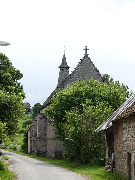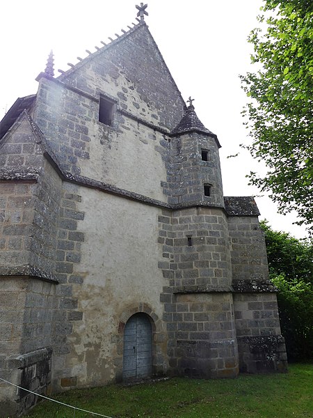 Orientée est‑ouest le long de la route départementale 55AL, la chapelle est surmontée d'un clocheton et soutenue par de puissants contreforts. Le portail ouest, sobre, contraste avec le portail nord richement sculpté en style gothique ; ce dernier, qui s'ouvre sur la route, comporte un trumeau et est surmonté des armoiries de Charles d'Aubusson et de celles de François de Viersat, abbé de Chambon. À l'intérieur, le portail donne accès à la nef, séparée du chœur par une clôture en bois ; la nef s'ouvre au sud sur une chapelle latérale, le chœur s'ouvrant quant à lui vers la chapelle sud et, au nord, vers la sacristie.