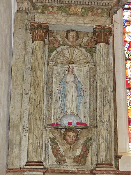 Parmi les éléments de mobilier, un vitrail remarquable daté de 1522, don de François de Viersat et représentant l'arbre de Jessé, est classé au titre des monuments historiques depuis le 5 décembre 1904. Un tabernacle à ailes en chêne, daté du XVIIe ou XVIIIe siècle, occupe toute la largeur du chœur ; il est inscrit au titre des monuments historiques le 12 mars 2007. Dans la chapelle latérale, une verrière de 1875, signée de l'atelier Fournier et Clément, illustre l'épisode du sauvetage de Charles d'Aubusson dans le marais.