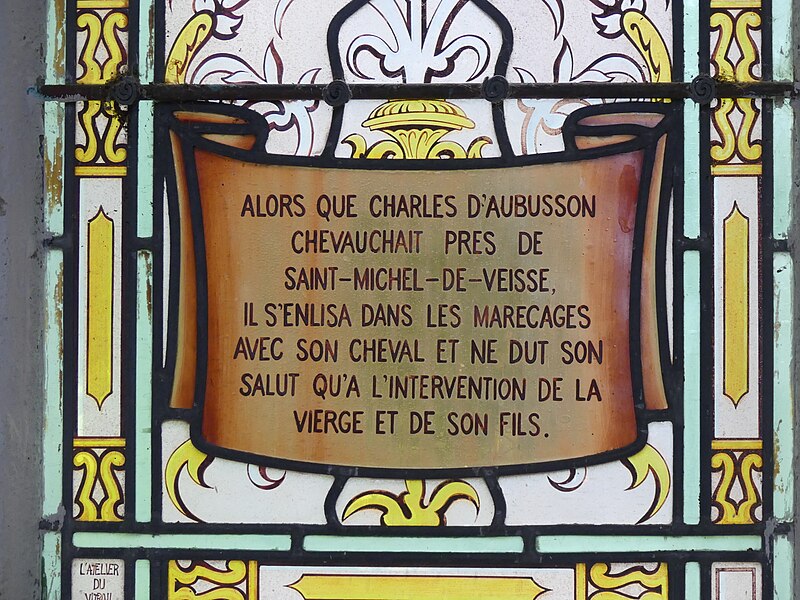 La photothèque rassemble des vues du pignon ouest, du clocheton, de l'inscription sur le contrefort nord‑est, du portail nord et des armoiries de Charles d'Aubusson et de François de Viersat, ainsi que des images de la nef, du chœur avec son tabernacle et de la verrière de 1522 représentant l'arbre de Jessé. Pour approfondir le sujet, on peut consulter l'article de Françoise Gatouillat, « Saint‑Michel‑de‑Veisse, Notre‑Dame de la Borne. Une chapelle d'origine seigneuriale », Congrès archéologique de France, vol. 181, 2024.