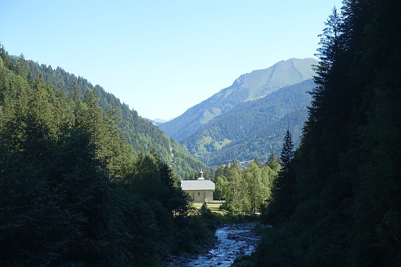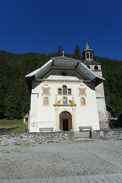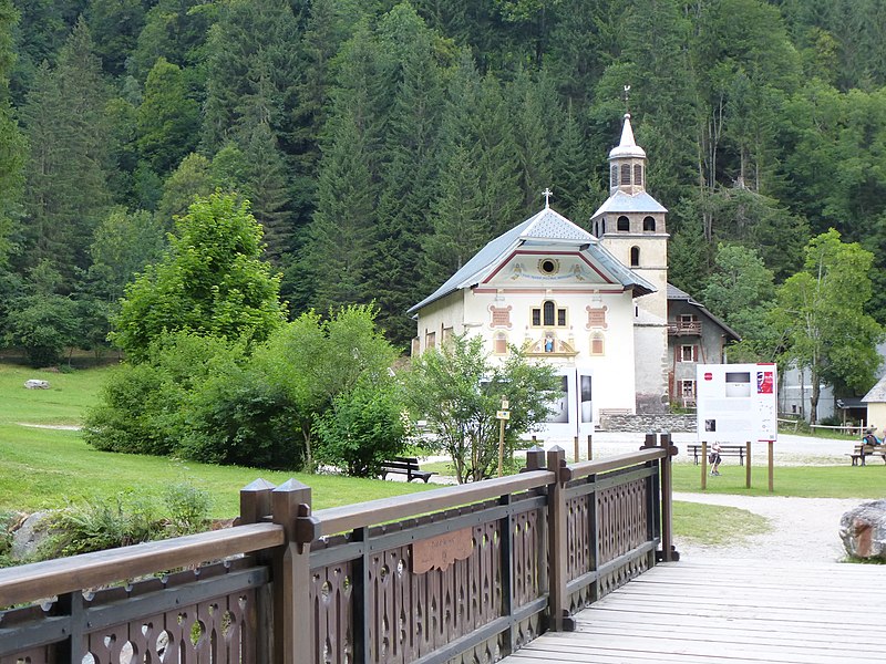 La chapelle Notre‑Dame‑de‑la‑Gorge se situe au fond du Val Montjoie, commune des Contamines‑Montjoie (Haute‑Savoie), à 1 210 mètres d’altitude, en bordure du Bon‑Nant. Présente depuis au moins le XIe siècle, elle a été reconstruite dans un style baroque entre 1699 et 1707. Elle se trouve sur l’itinéraire qui, depuis la vallée de l’Arve via Saint‑Gervais, mène au col du Bonhomme puis vers l’Italie, et un ancien ermitage lui est rattaché en amont du cours d’eau.