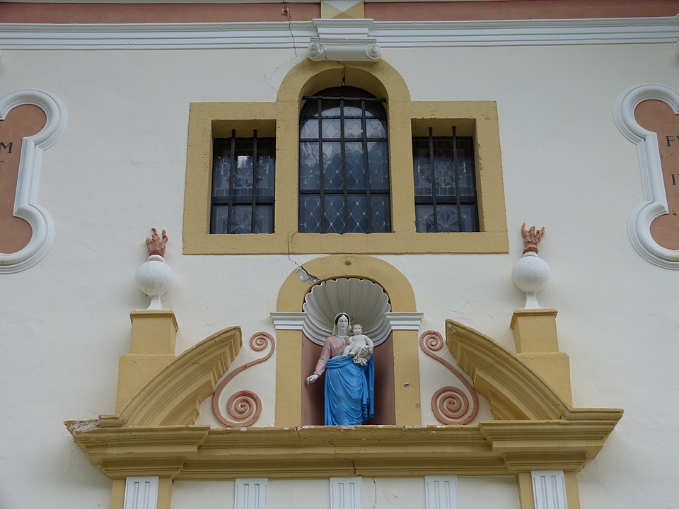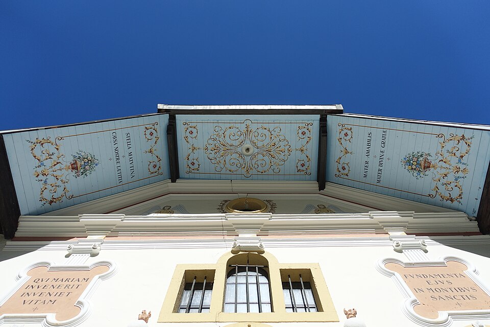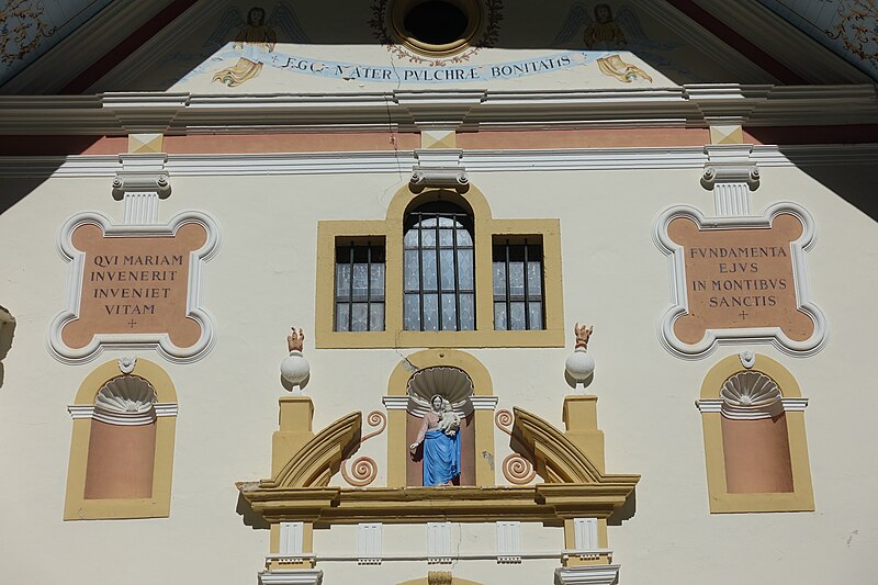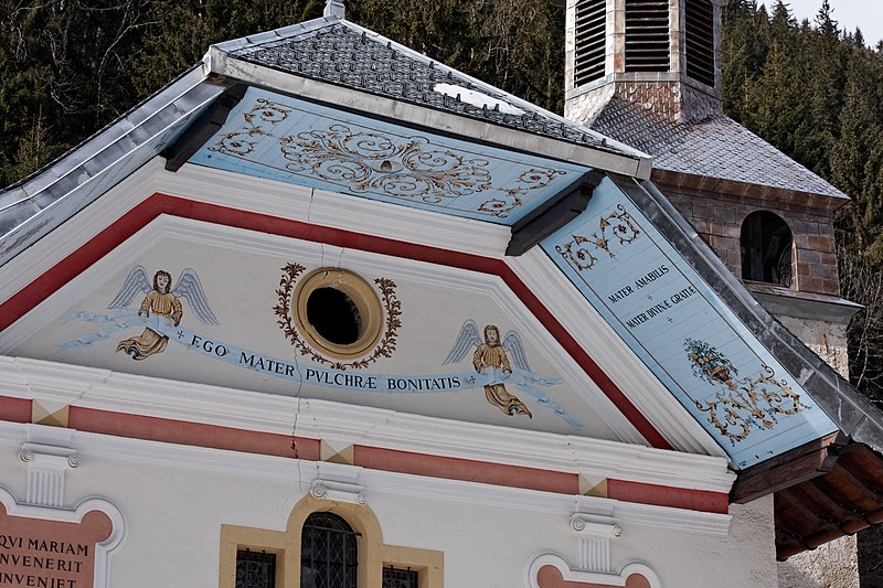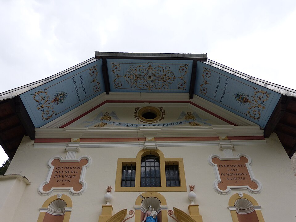 L’édifice se compose d’une nef unique flanquée au nord d’un clocher carré couronné d’un bulbe. Sur la façade, une niche au‑dessus de la porte abrite une Vierge à l’Enfant polychrome ; le fronton supérieur, percé d’un oculus, porte la devise EGO MATER PVLCHÆ BONITATIS. Deux cartouches de part et d’autre de la porte portent les inscriptions QVI MARIAM INVENERIT INVENIET VITAM et FVNDAMENTA EJVS IN MONTIBVS SANCTIS. L’intérieur est orné de stucs et de trois retables dorés de style baroque au‑dessus des autels.
