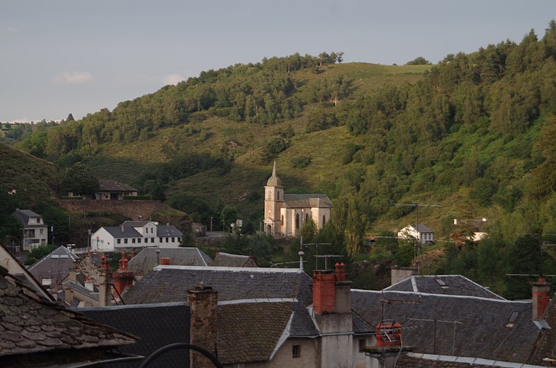 La chapelle Notre‑Dame‑de‑Pitié, située à Chaudes‑Aigues (Cantal, Auvergne‑Rhône‑Alpes), est une chapelle de pèlerinage liée au culte d'une Pietà du XVe siècle autrefois très fréquentée. L'édifice a été presque entièrement reconstruit entre 1840 et 1860. Sa silhouette associe des traits gothiques — voûtes d'ogives et ouvertures — à des éléments classiques, comme le clocher‑porche au toit à l'impériale et le portail à fronton triangulaire. L'intérieur est orné de décors peints néo‑gothiques à motifs géométriques qui couvrent murs et voûtes. Les voûtes du chœur présentent des rinceaux dorés sur fond azur formant un trompe‑l'œil de remplages flamboyants. Les boiseries sont sculptées de motifs néo‑gothiques et l'ensemble décoratif est complété par des vitraux sans doute issus de l'atelier Thévenot. La chapelle est inscrite au titre des monuments historiques par arrêté du 27 septembre 2006.