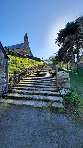 Escalier extérieur de la chapelle (cad. AC 175) : classement par arrêté du 1er avril 1936 ; Chapelle, calvaire et enceinte du cimetière : classement par arrêté du 26 septembre 1968