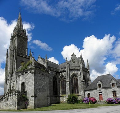 La chapelle a la forme d’une croix latine, longue de 28 mètres et décrite comme haute de 70 mètres ; elle comprend une nef de trois travées, des bas-côtés sur les dernières travées et un chevet à trois pans. L’extérieur présente un décor gothique flamboyant : une galerie supérieure ajourée, dix-sept gargouilles, cinq grands pignons finement ouvragés sur la façade sud et une façade nord plus sobre, flanquée d’un appentis destiné aux offrandes et aux réunions de fabrique. Le clocher-porche occidental s’élève sur trois étages ornés d’arcatures, de rosaces, de niches et de galeries, couronné par une flèche pyramidale et accompagné de clochetons et d’une tourelle polygonale. Le chevet, d’esprit Beaumanoir, est cantonné de contreforts à pinacles fleuris et adossé à une sacristie octogonale du XVIIIe siècle.
