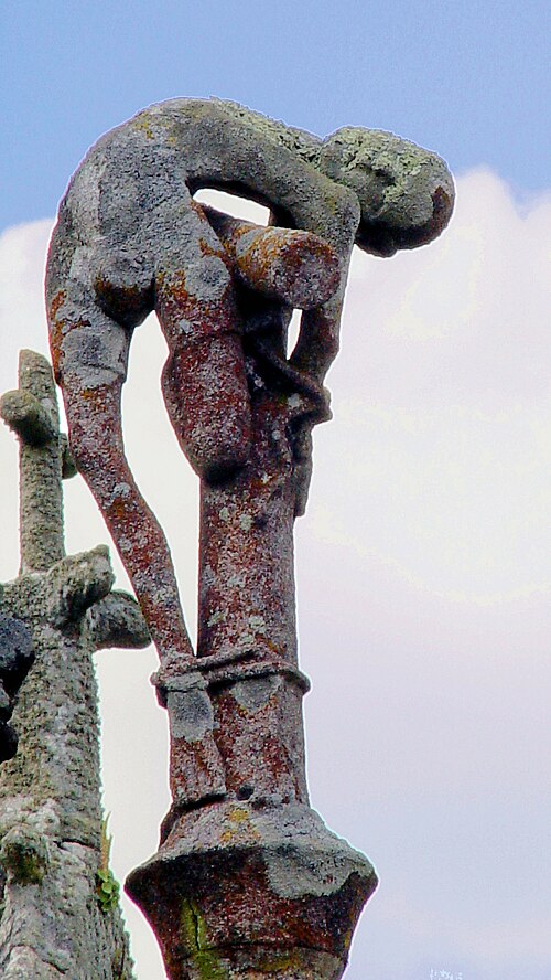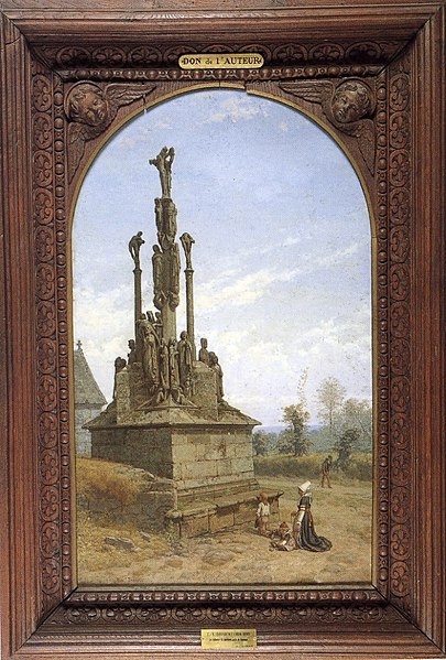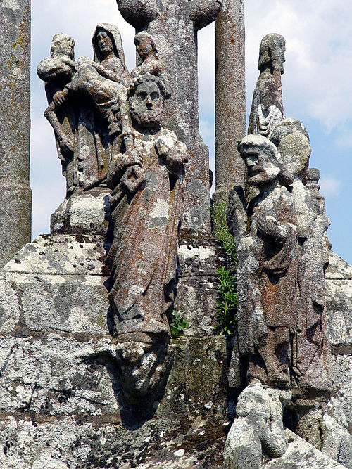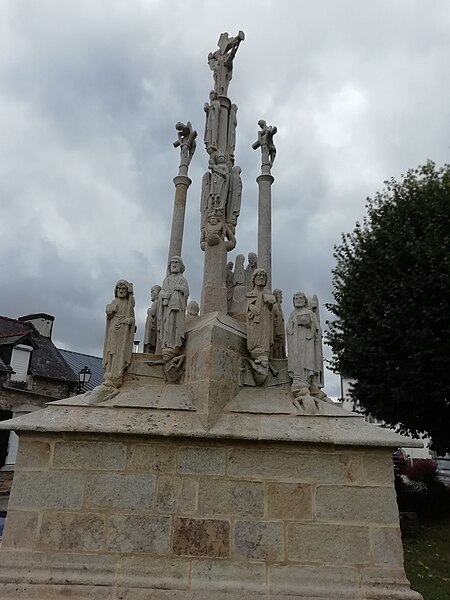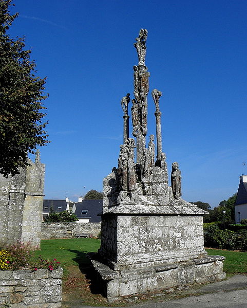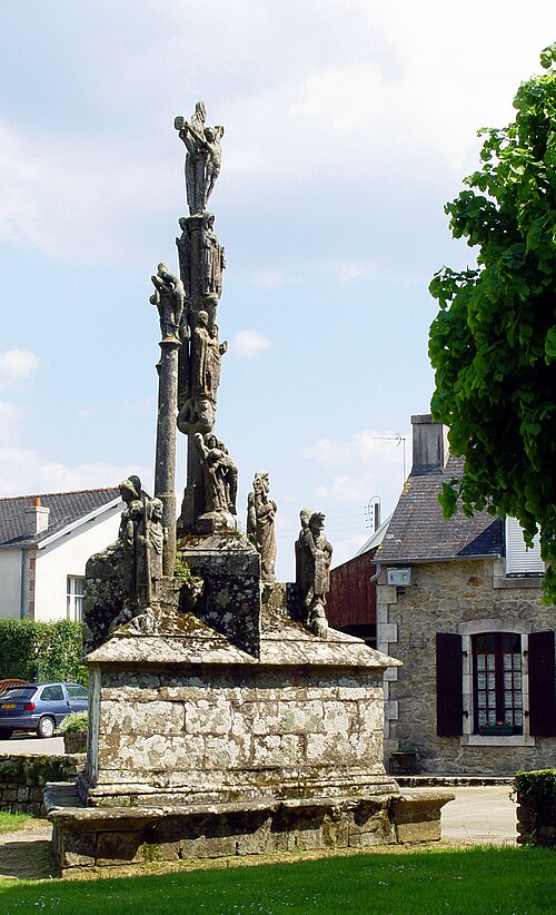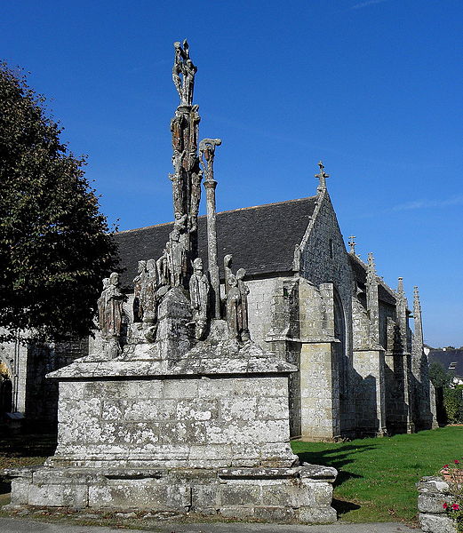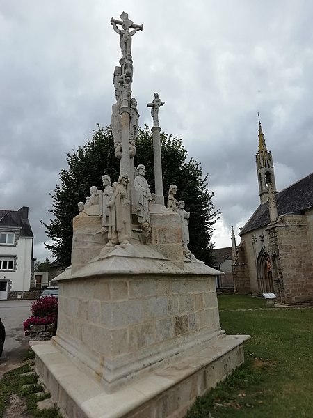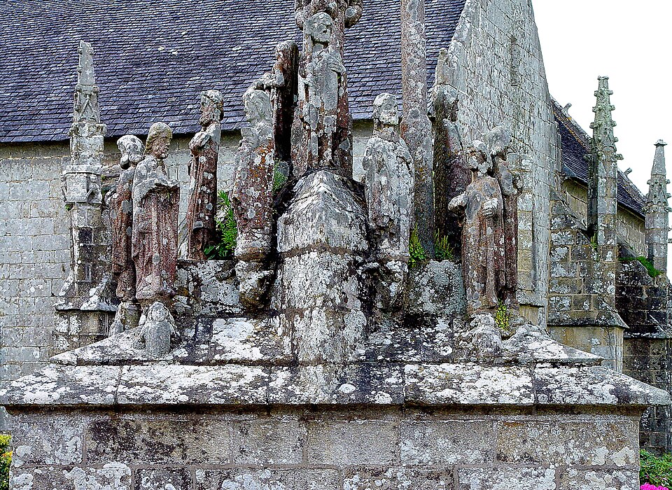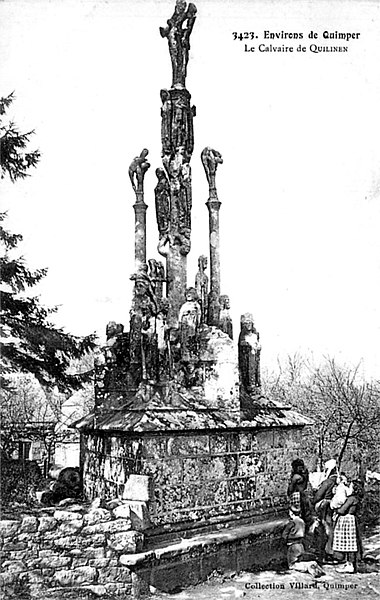 La chapelle Notre-Dame de Quilinen, édifiée à la fin du XVe siècle, présente une nef avec un bas-côté nord de trois travées, un chevet plat et une chapelle seigneuriale au nord. Le portail méridional polychrome, surmonté d'un tympan sculpté en calcaire illustrant l'Annonciation, ouvre sur des voûtes en croisées d'ogives ; le chœur est voûté en ogives quadripartites tandis que la nef et le bas-côté sont lambrissés. Les murs sont en granite et en schiste. Le clocher, parfois attribué au XVIIIe siècle, a été replacé en pignon et daté de 1868 par l'architecte diocésain Joseph Bigot. L'intérieur conserve d'importantes peintures murales, dont une Roue de Fortune du XVIe siècle réapparue lors de la restauration, et un ensemble de peintures datées de 1621 dans la chapelle nord. La chapelle comporte également une chapelle seigneuriale des Penanjeun-Launay, voûtée en deux travées et ornée de fresques et de groupes sculptés, notamment un saint Yves entre le riche et le pauvre. Le mobilier compte de nombreuses statues (saint Cadoc, saint Sébastien, saint Roch, saint Guénolé, une Vierge couronnée et des groupes de Déploration et d'Ascension), une poutre de gloire et les vestiges d'une roue à carillons. Les vitraux contemporains ont été réalisés en 2017 par le maître verrier Antoine Le Bihan ; la maîtresse-vitre représente Notre‑Dame de Quilinen entre deux anges et saint Guénolé. Le calvaire voisin, d'époque XVIe, comporte trois croix et de nombreuses statues d'apôtres et de saints, dont une Pietà ; sa base est formée de deux triangles superposés qui dessinent une étoile à six branches, et les sculptures conservent des traces de peinture et de dorure. La fontaine de dévotion, partiellement abritée sous une niche couverte et ouvrant par une arcade en tiers-point moulurée, présente des écus martelés et débouche sur un bassin carré bordé de dalles de granit. L'édifice, sa parvis, le calvaire et la fontaine ont fait l'objet de protections au titre des monuments historiques et ont bénéficié d'une restauration importante entre 2013 et 2017, le calvaire étant restauré en 2018. Des armoiries et des clefs de voûte portant des macles et d'autres blasons témoignent des liens de la chapelle avec des familles seigneuriales locales et avec la protection ducale. Malgré l'absence de documents explicites sur la fondation, des reprises de pierres et des indices architecturaux indiquent une construction en deux temps au XVe siècle, avec des éléments antérieurs intégrés.