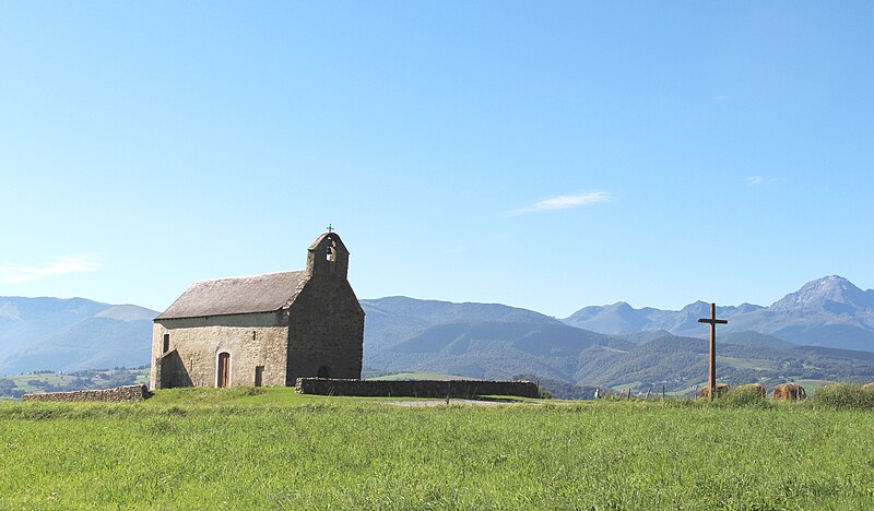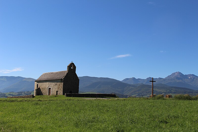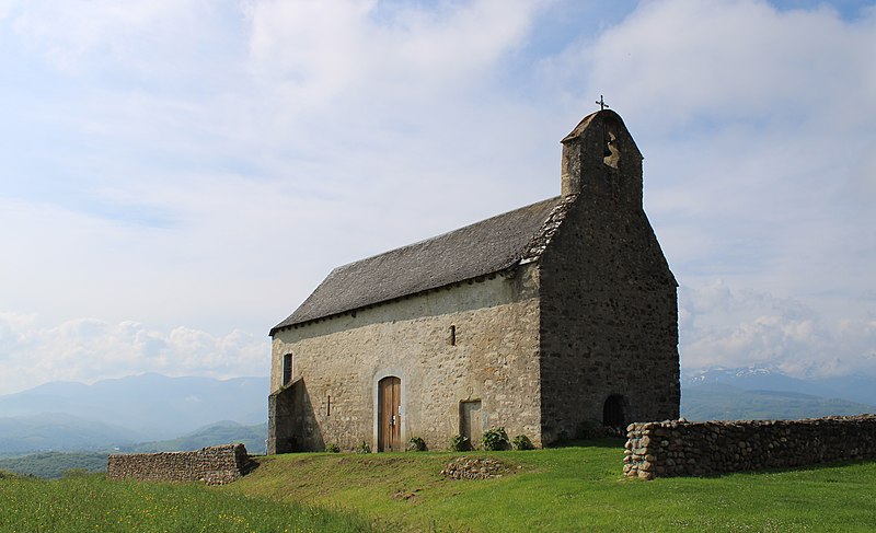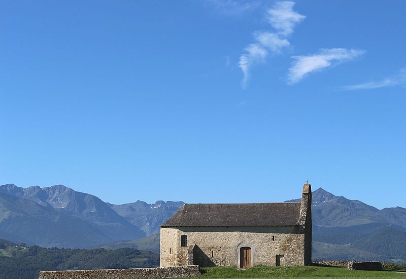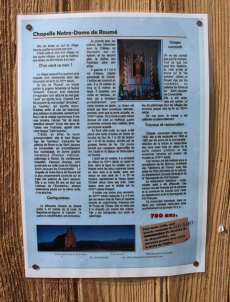 La chapelle Notre‑Dame‑de‑Roumé, isolée en bordure de la D120 à un kilomètre au sud de Cieutat, est implantée sur un monticule et entourée d'un muret de pierres sèches. Selon la tradition locale, son origine est ancienne et son nom évoquerait soit la mémoire d'un établissement romain, soit la « Cami roumiou », route empruntée par les pèlerins de Saint‑Jacques. L'édifice, de plan trapézoïdal, mesure environ 16 mètres de long sur 6 de large et se termine par un chevet à trois pans. La maçonnerie mêle pierre de taille, moellons et galets, témoignant de remaniements d'interprétation difficile. Sur la face nord et à l'ouest de l'entrée actuelle, un chrisme est enchâssé au‑dessus de la trace d'une ancienne ouverture en accolade. La façade ouest forme un clocher‑mur accueillant une unique cloche. À l'intérieur, la couverture est une fausse voûte en lames de bois peint ; le sol est dallé d'anciens carreaux de terre cuite. L'autel est orné d'un retable d'esprit XVIIIe siècle et, vers le pignon ouest, une tribune en bois porte des bancs disposés en gradins. Le mobilier classé comprend le retable et la statue de la Vierge à l'Enfant, le pupitre d'autel, la croix d'autel et les canons d'autel. D'après les sources, la chapelle a connu plusieurs campagnes de construction aux XVIe et XIXe siècles ; elle aurait peut‑être été détruite à la suite des guerres de Religion puis largement restaurée au XVIIe siècle, et le chevet ancien a été démoli et remplacé au début du XIXe siècle. L'édifice a été inscrit aux monuments historiques en 1956 et restauré en 1985. On remarque encore, en contrebas du chevet à trois pans, un porche latéral avec une ancienne porte murée surmontée d'un chrisme, ainsi qu'un oratoire extérieur et la nef qui conduisent au retable et à la Vierge à l'Enfant.