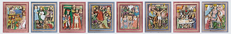 Ajout d'un jubé en bois polychrome représentant des scènes religieuses.