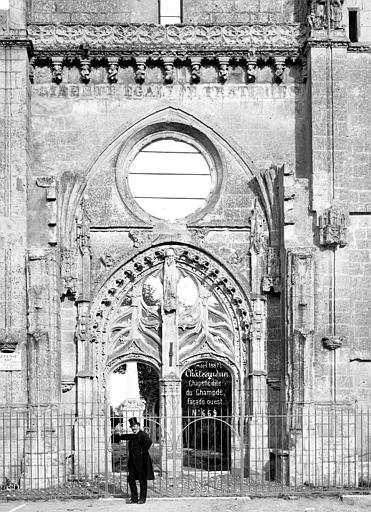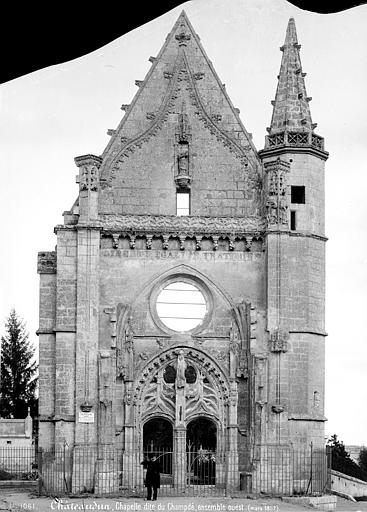 L'ancienne chapelle Notre‑Dame du Champdé est un ancien édifice catholique en ruines situé à Châteaudun (Eure‑et‑Loire, Centre‑Val de Loire). Sa façade, seul vestige conservé, sert aujourd'hui d'entrée au cimetière du Champdé. L'édifice est particulièrement remarquable pour son portail richement ouvragé, typique de la fin de l'époque gothique. La fondation de la chapelle remonte au XVe siècle. Des photographies de Séraphin‑Médéric Mieusement prises en mars 1887 montrent la devise « Liberté, Égalité, Fraternité » inscrite au fronton de la façade ouest et documentent la façade ainsi que des détails sculptés. L'ancienne chapelle Notre‑Dame du Champdé est classée au titre des monuments historiques par arrêté du 3 février 1879.