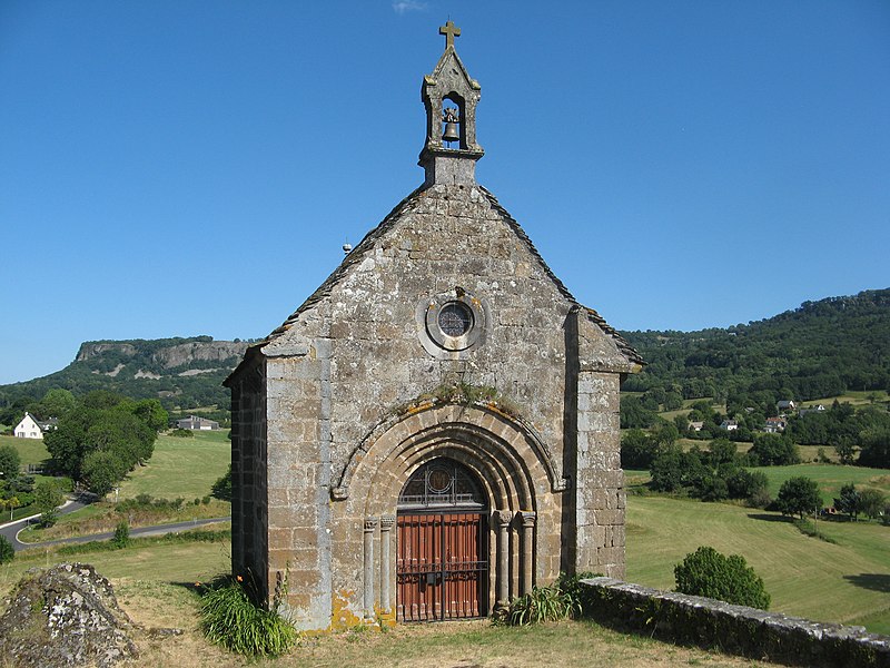 La chapelle est bâtie en pierre de taille brune, en grand appareil de tuf volcanique, et sa maçonnerie montre de nombreux trous de boulin. Elle se compose de deux travées voûtées et d’une abside également voûtée en charpente ; l’intérieur ne comporte aucun décor. À l’extérieur, le portail est flanqué de quatre colonnettes aux chapiteaux et bases sculptés. La façade occidentale présente un portail à voussures multiples encadré de deux paires de colonnes et surmonté d’un petit oculus ; elle est coiffée d’un clocheton à baie campanaire unique et d’une croix en pierre. Les façades latérales sont soutenues par de puissants contreforts et percées de petites fenêtres à simple ébrasement. Le chevet se compose d’une abside semi‑circulaire en appareil très régulier, rythmée par des colonnes engagées, percée d’une unique petite fenêtre à simple ébrasement et couronnée d’une corniche saillante supportée par des modillons.