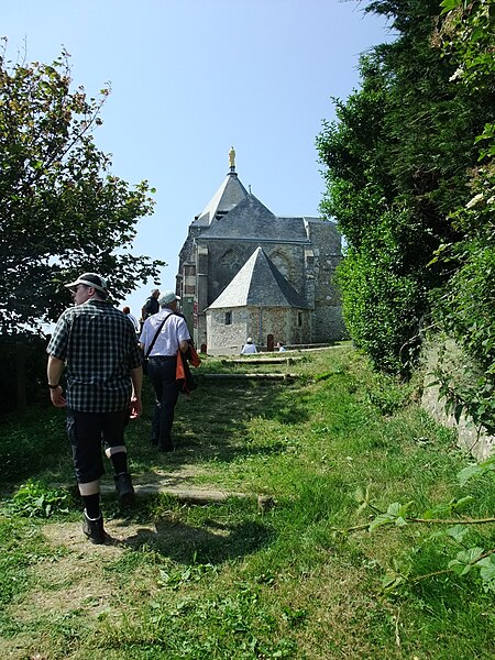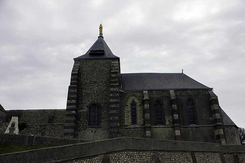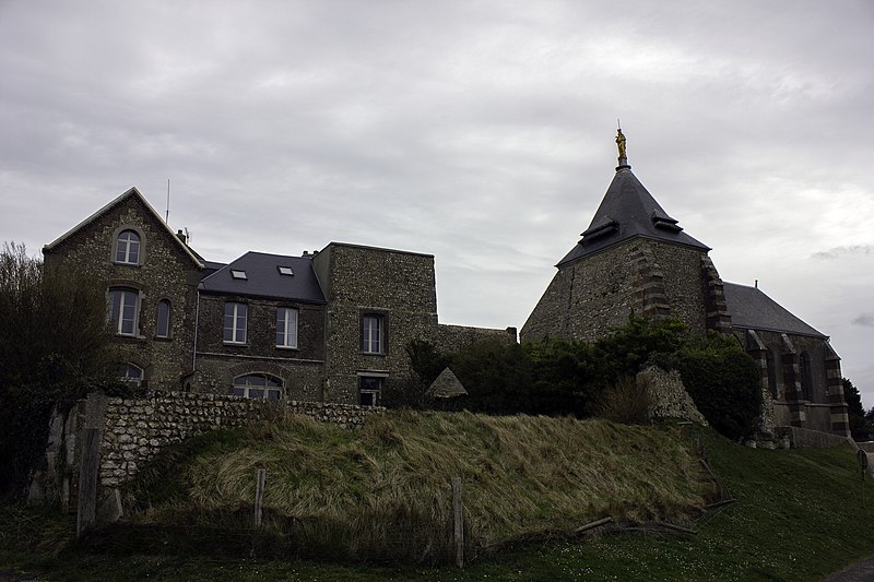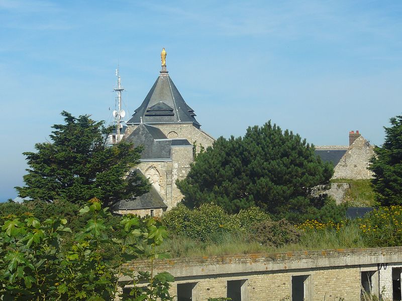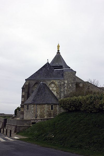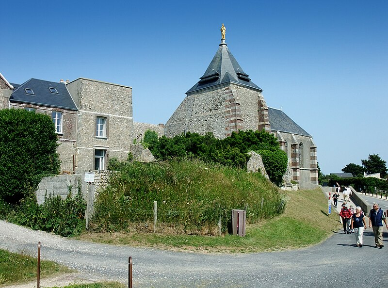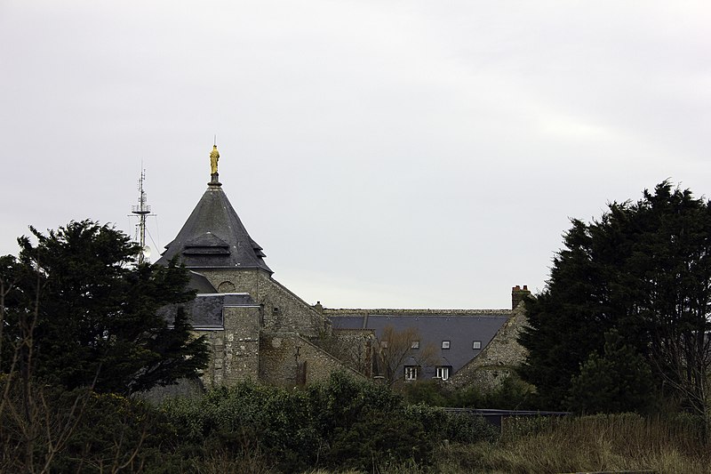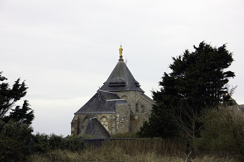 La chapelle Notre‑Dame‑du‑Salut se situe à Fécamp, dans le département de la Seine‑Maritime. Elle aurait été fondée au XIe siècle et deux traditions expliquent son origine : selon la première, elle aurait été érigée sur l’ordre du comte Baudouin, compagnon de Rollon, dans les dépendances du fief accordé par le duc de Normandie au lieu‑dit Burgus, qui devint ensuite le Bourg Baudouin et donna à la chapelle son premier nom, Notre‑Dame de Baudouin du Bourg. La seconde tradition rapporte qu’en 1035 Robert le Magnifique, sauvé d’un naufrage, fit le vœu de faire bâtir trois chapelles, aboutissant à la création à Fécamp de Notre‑Dame de Salut, à Honfleur de Notre‑Dame de Grâce et à Caen de Notre‑Dame de la Délivrance. Reconstruite au XIIIe siècle, la chapelle fut intégrée au prieuré de Bourg‑Baudouin et dépendait de l’abbaye de la Sainte‑Trinité de Fécamp ; elle accueillait des pèlerins venus du nord de la France, attirés par le culte du Précieux Sang conservé dans l’abbaye. Lors des guerres de Religion, le site fut fortifié ; les habitants de Fécamp, inquiets, obtinrent en 1615 la démolition de cette forteresse. La chapelle échappa ensuite à la destruction pendant la Révolution française grâce à un décret de l’Assemblée nationale du 6 août 1792 qui justifia sa conservation par son utilité pour les navigateurs. Au XIXe siècle, Notre‑Dame de Salut retrouva sa vocation de lieu de pèlerinage pour les marins et pêcheurs de Fécamp, qui s’y rendaient avant et après leurs campagnes à Terre‑Neuve par la « sente aux matelots », et célébraient en mars la Marchèque, fête populaire du Pays de Caux consacrée à l’Annonciation. Le bâtiment a subi de nombreux dégâts : la nef, fragilisée au XVIIIe siècle, fut définitivement endommagée par un ouragan en 1800, laissant la chapelle à ciel ouvert ; lors de la Seconde Guerre mondiale, les bombardements de 1942 détruisirent le clocher, qui fut reconstruit et couronné d’une statue dorée de la Vierge à l’Enfant offerte en 1902 par un armateur. L’intérieur conserve de nombreux ex‑voto marins — tableaux, objets et témoignages de naufragés — en hommage à la Vierge protectrice, et en 1948 le sculpteur Jacques Touzet exécuta une statue en pierre blanche représentant Marie tenant symboliquement un trois‑mâts. Aujourd’hui encore, la chapelle reste un haut lieu de recueillement où fidèles, visiteurs et descendants de marins allument des cierges et déposent des fleurs ; sa modestie et son enracinement dans la mémoire maritime locale ont été évoqués par Maupassant qui l’a perçue comme une « vieille chapelle toute grise » veillant sur le port de Fécamp.