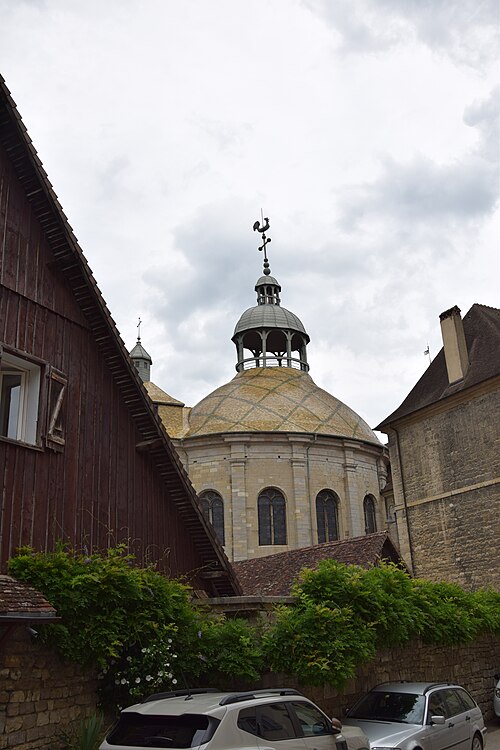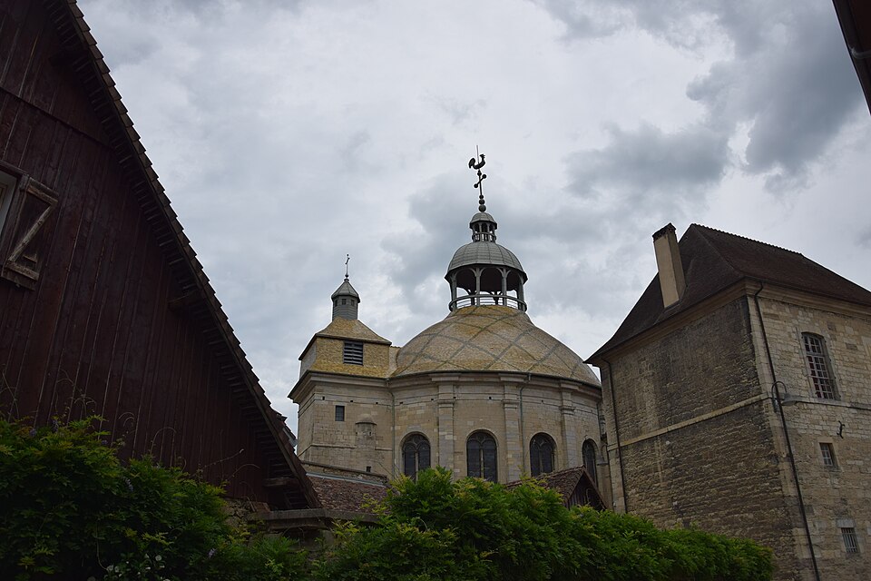 La chapelle Notre‑Dame‑la‑Libératrice de Salins‑les‑Bains (Jura) est une chapelle votive du XVIIe siècle dédiée à la Vierge Marie, classée au titre des monuments historiques par arrêté du 28 février 1931. Elle a été édifiée entre 1649 et le 23 juin 1662 à la demande des habitants, en remerciement pour la protection reçue contre les épidémies et la Guerre de Trente Ans. Sa singularité tient à son plan ovale surmonté d’un dôme monumental recouvert de tuiles vernissées de Bourgogne. Le dôme est coiffé d’un coq girouette en cuivre d’environ 700 kg, présenté comme le plus grand de Franche‑Comté. Initialement isolée, la chapelle a ensuite été intégrée dans l’hôtel de ville bâti entre 1718 et 1739, et reste un témoignage notable de la dévotion et de l’architecture religieuse du XVIIe siècle à Salins‑les‑Bains.