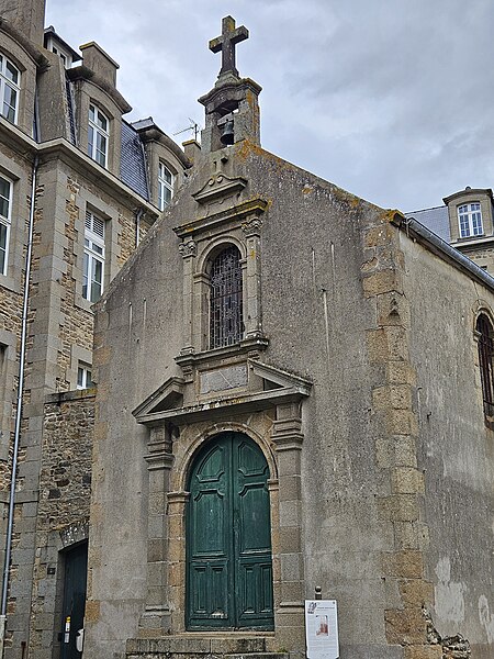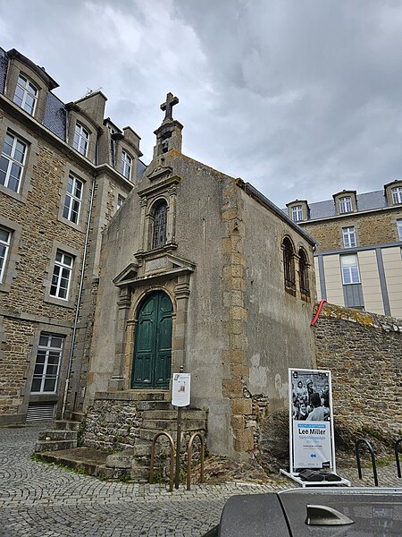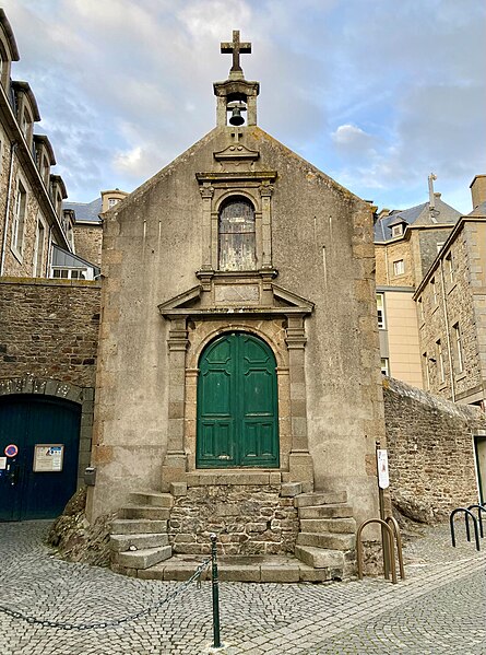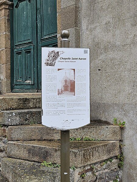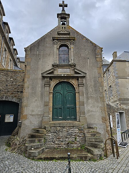 La chapelle Saint‑Aaron est un petit édifice religieux situé au 3, place Saint‑Aaron, à Saint‑Malo (Ille‑et‑Vilaine), en Bretagne. Située au nord du département et au nord de Saint‑Malo intra‑muros, elle est dédiée à saint Aaron, père spirituel de saint Malo ; selon la tradition, elle occupe l'emplacement du débarquement, de l'ermitage ou de la tombe du saint. Datée de 1621, la chapelle est inscrite au titre des monuments historiques depuis le 14 février 1946. L'édifice, sobre et de petite taille, présente une façade principale orientée à l'ouest d'environ 6 mètres de large pour une longueur totale d'environ 5 mètres. La façade comporte une porte unique surmontée d'une baie, puis d'une cloche et d'une croix au sommet du pignon, et la façade sud comporte deux baies.