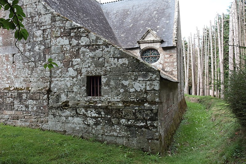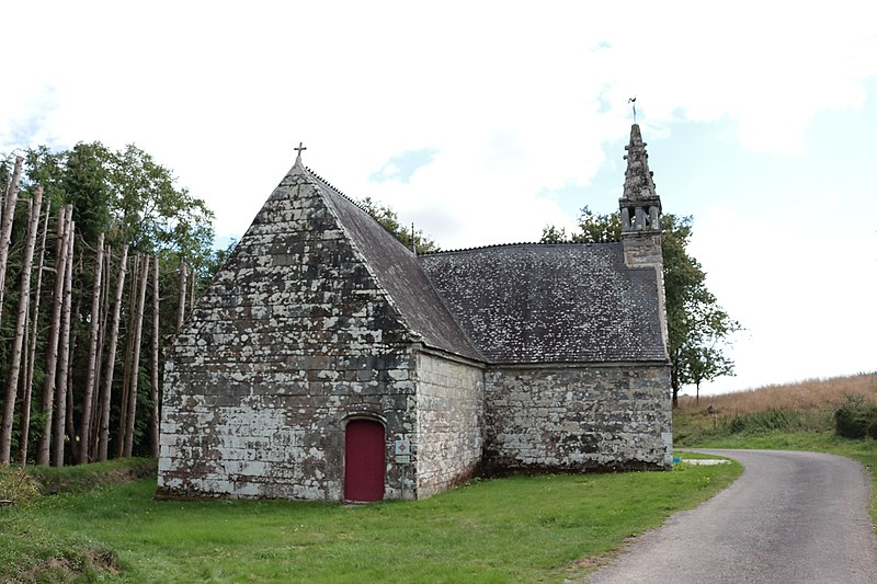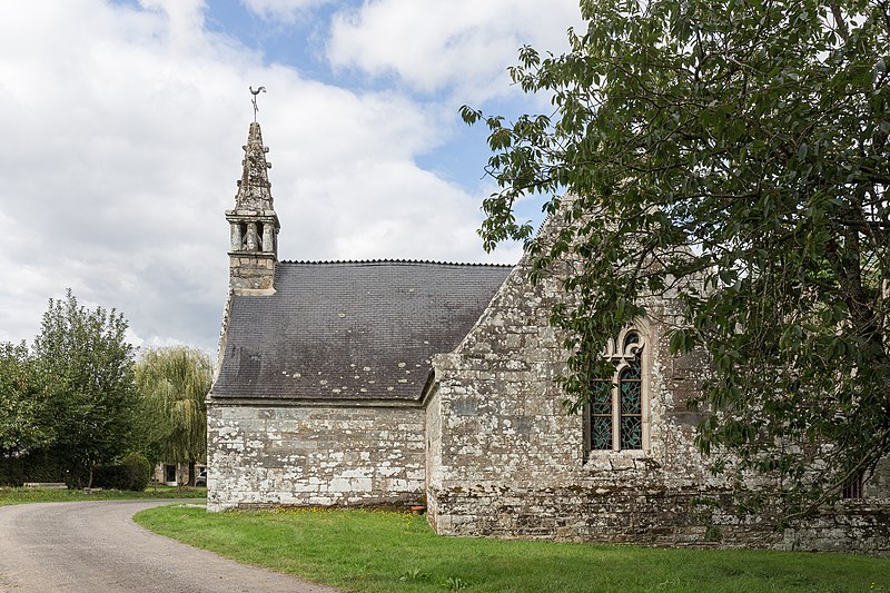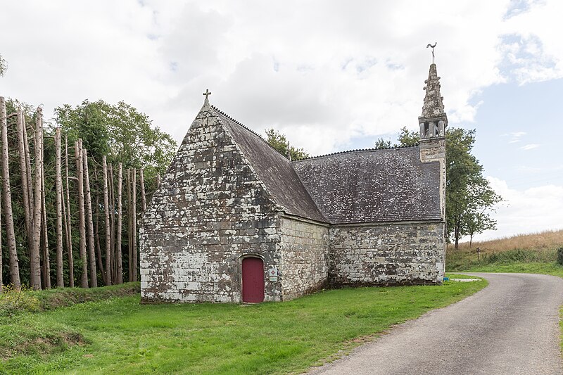 La chapelle Saint-André, située au lieu-dit Langlo à Cléguérec (Morbihan), est un petit édifice du XVIIIe siècle inscrit au titre des monuments historiques le 12 septembre 1977. De plan en croix latine, elle présente des bras de transept beaucoup plus développés que la nef. La façade occidentale comporte une porte principale moulurée en anse de panier, surmontée d’un fronton triangulaire percé au sommet d’une ouverture légèrement brisée, et un petit clocher achevé par une flèche à crochets. Le chevet droit s’ouvre par une fenêtre maîtresse en arc brisé avec remplage. La baie du pignon oriental conserve un panneau de vitrail ancien à personnages. Les meneaux des autres fenêtres sont décorés de fleurs de lys.