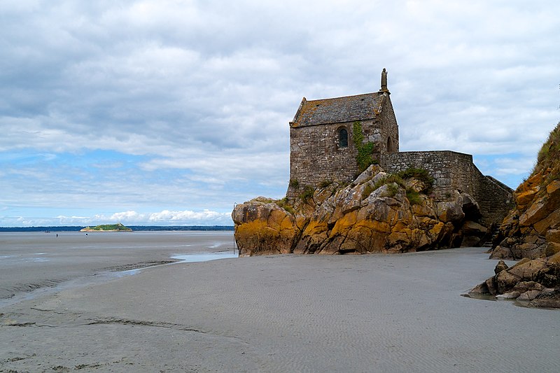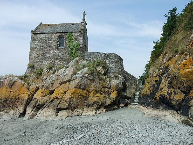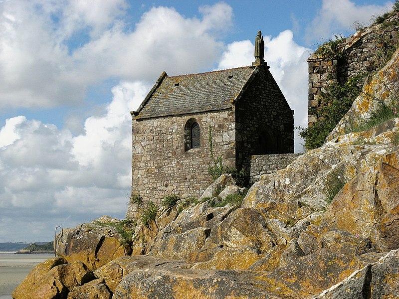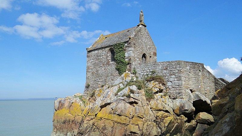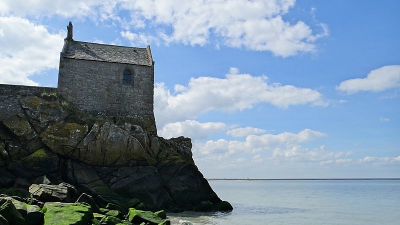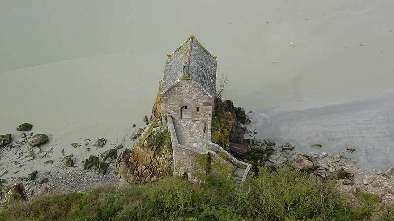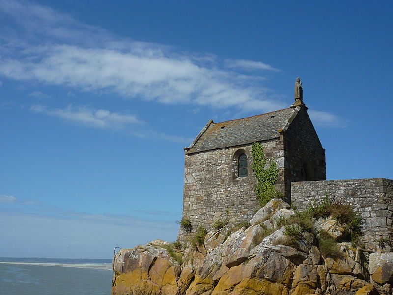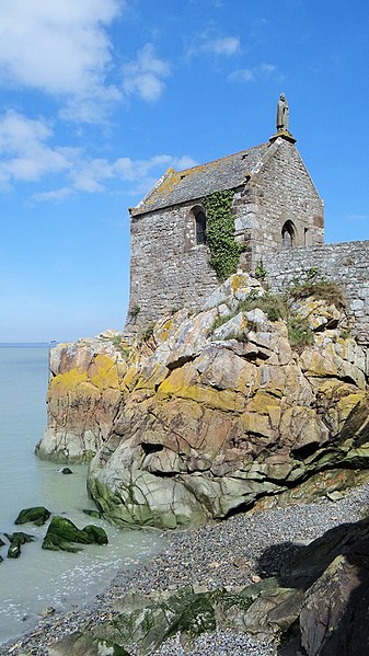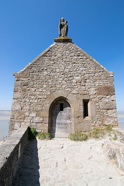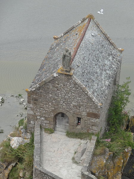 La chapelle Saint-Aubert est une chapelle catholique du Mont-Saint-Michel, dans le département de la Manche. Elle se dresse sur une excroissance rocheuse à l'extrémité nord-ouest du mont. Le bâtiment, de plan rectangulaire, est couvert d'un toit à deux pentes ; il comporte deux petites fenêtres en plein cintre et son pignon est surmonté d'une statue de saint Aubert. Son style roman élémentaire suggère une construction vers le XIIe siècle, probablement sous l'abbatiat de Robert de Torigni (1154-1186), et elle a été élevée en l'honneur de saint Aubert. Selon la légende, la chapelle repose sur un roc isolé appelé le Pic-Saint-Aubert : Aubert d'Avranches, après avoir reçu l'ordre d'entreprendre la construction du Mont-Saint-Michel, aurait aidé à renverser une pierre qu'un fermier nommé Bain et ses douze fils ne parvenaient pas à déplacer ; le coup de pied du dernier-né, tenu dans les bras d'Aubert, aurait fait tomber la pierre. L'édifice est classé au titre des monuments historiques en 1908. Des ressources documentaires et iconographiques sont disponibles dans les bases Mérimée et Structurae, sur Clochers de France et l'Observatoire du patrimoine religieux, ainsi que sur Wikimedia Commons ; la chapelle figure également dans des notices et portails consacrés au catholicisme, aux monuments historiques, au département de la Manche et à l'architecture chrétienne.