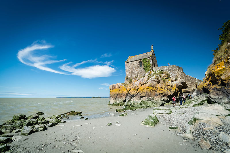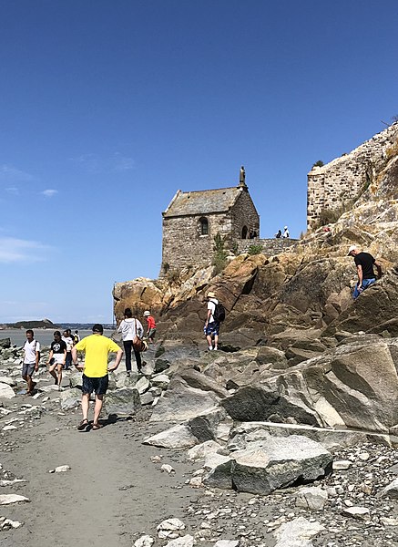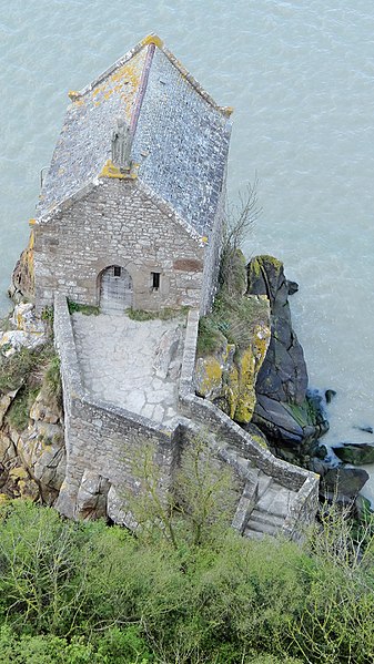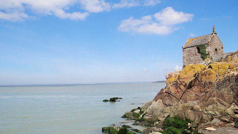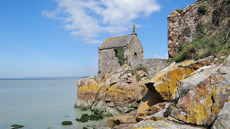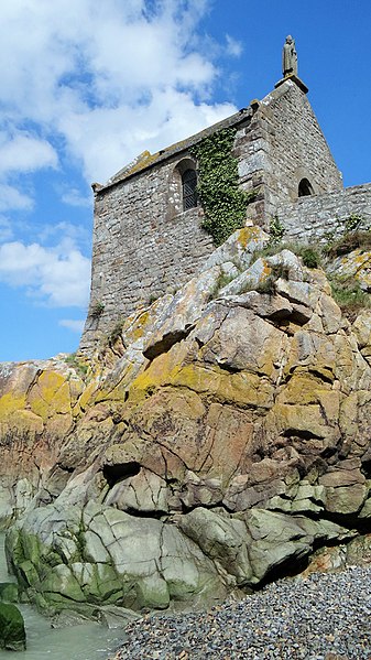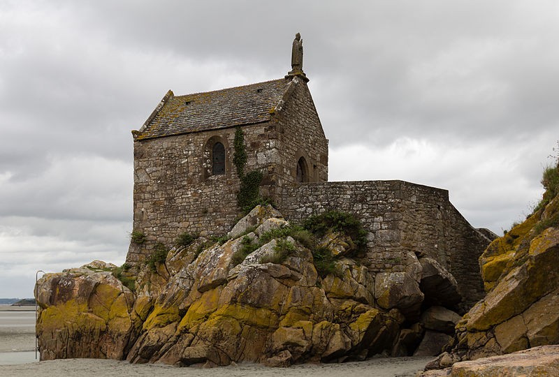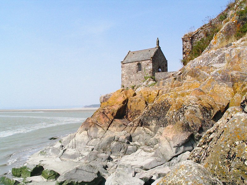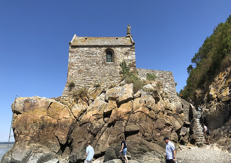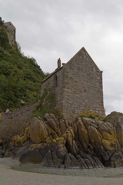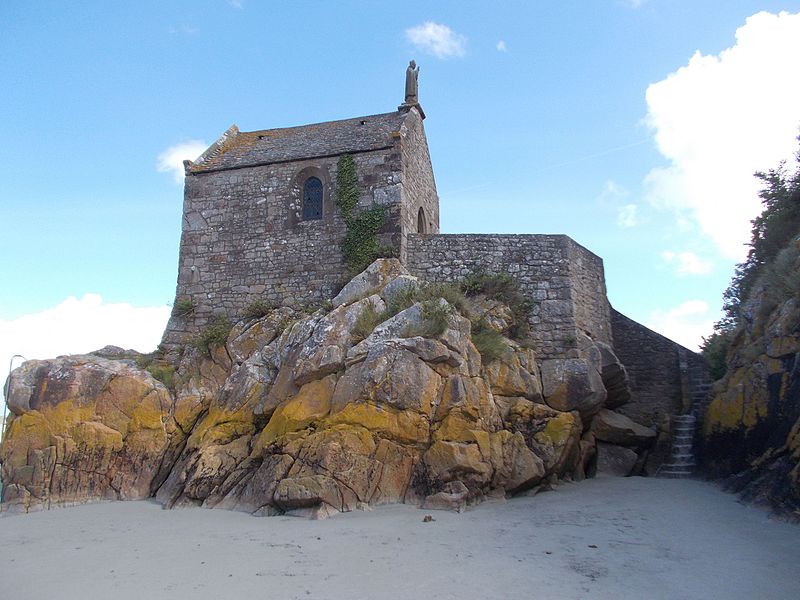 La chapelle Saint-Aubert est une chapelle catholique du Mont-Saint-Michel, dans le département de la Manche. Elle se dresse sur une excroissance rocheuse à l'extrémité nord-ouest du mont. Le bâtiment, de plan rectangulaire, est couvert d'un toit à deux pentes ; il comporte deux petites fenêtres en plein cintre et son pignon est surmonté d'une statue de saint Aubert. Son style roman élémentaire suggère une construction vers le XIIe siècle, probablement sous l'abbatiat de Robert de Torigni (1154-1186), et elle a été élevée en l'honneur de saint Aubert. Selon la légende, la chapelle repose sur un roc isolé appelé le Pic-Saint-Aubert : Aubert d'Avranches, après avoir reçu l'ordre d'entreprendre la construction du Mont-Saint-Michel, aurait aidé à renverser une pierre qu'un fermier nommé Bain et ses douze fils ne parvenaient pas à déplacer ; le coup de pied du dernier-né, tenu dans les bras d'Aubert, aurait fait tomber la pierre. L'édifice est classé au titre des monuments historiques en 1908. Des ressources documentaires et iconographiques sont disponibles dans les bases Mérimée et Structurae, sur Clochers de France et l'Observatoire du patrimoine religieux, ainsi que sur Wikimedia Commons ; la chapelle figure également dans des notices et portails consacrés au catholicisme, aux monuments historiques, au département de la Manche et à l'architecture chrétienne.