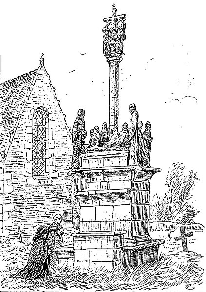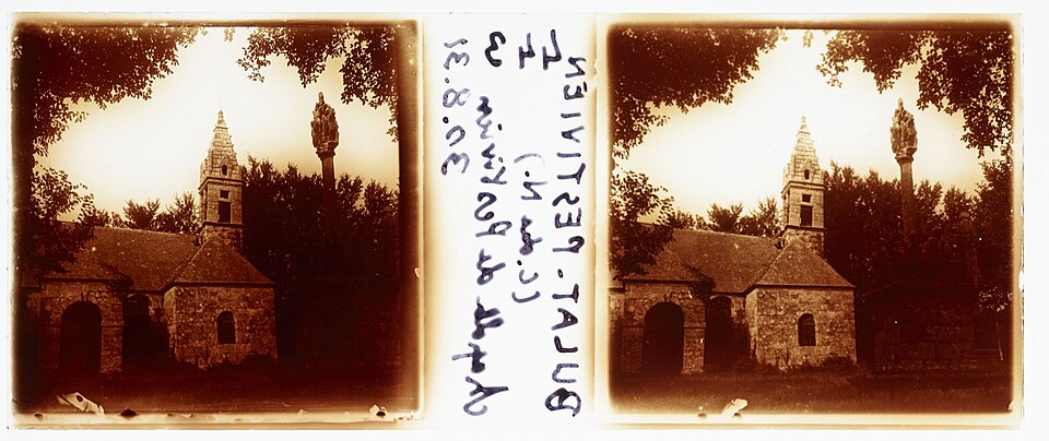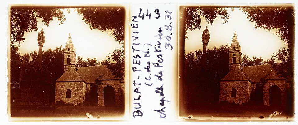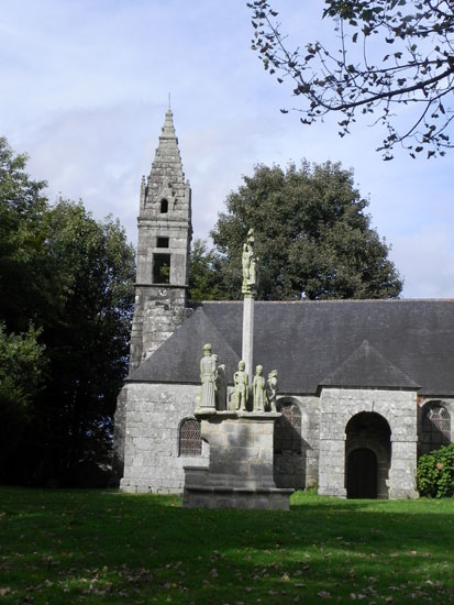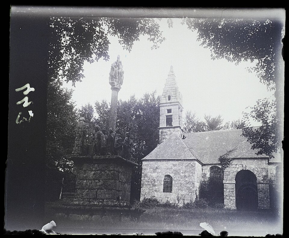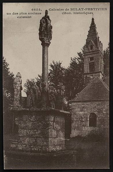 La chapelle Saint-Blaise se situe à Bulat-Pestivien (Côtes-d'Armor, Bretagne) et est implantée dans un enclos qui comprend un cimetière. La chapelle et le cimetière datent des XVIIe et XVIIIe siècles ; le calvaire appartenant à cet ensemble remonte au XVIe siècle. Lieu de pèlerinage, l'édifice se distingue par sa façade occidentale et son clocher. La façade présente un portail encadré par deux contreforts reliés par un arc en plein cintre ; au-dessus s'élève une tour carrée couronnée d'une flèche en pierre ornée de lucarnes et de fleurons. Le portail, daté du XVIIe siècle, est en plein cintre, surmonté d'un fronton et flanqué de pilastres décorés de rosaces et de losanges d'inspiration Renaissance ; ces pilastres se prolongent verticalement et traversent le fronton. Un cartouche, encadré de deux lions, surmonte le portail. Le clocher repose sur un socle carré ; sa partie supérieure est ajourée, avec meneaux et traverses pour le support des cloches, et l'entablement comprend une architrave, une frise et une corniche. La chapelle est classée et partiellement inscrite au titre des monuments historiques par les arrêtés des 15 avril 1911 et 13 janvier 1964. Des informations complémentaires se trouvent dans les inventaires et portails spécialisés (Clochers de France, Observatoire du patrimoine religieux, Inventaire Bretagne, base Mérimée et portails départementaux).