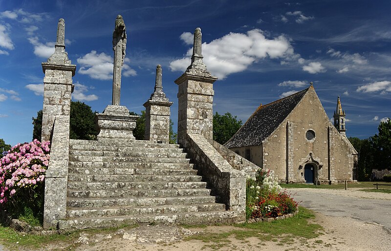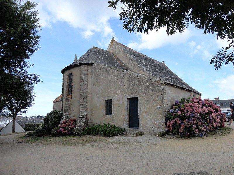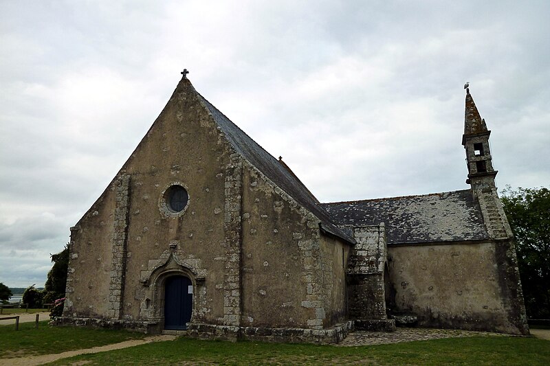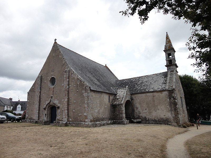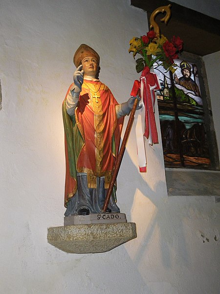 La chapelle Saint-Cado se trouve sur l'île de Saint-Cado, dans la rivière d'Étel, sur la commune de Belz (Morbihan, Bretagne, France). D'origine romane, l'édifice remonte aux XIe-XIIe siècles et conserve un chevet semi-circulaire. La courte nef comporte trois travées ouvertes sur les bas-côtés par des arcades en plein cintre retombant sur des piles carrées à imposte simple. L'arc triomphal, également en plein cintre et à double rouleau, repose sur des piles carrées munies de colonnes engagées et de chapiteaux romans dont la sculpture est peu visible. Le chapiteau nord est décoré de motifs végétaux, le chapiteau sud de bâtons brisés et de volutes encadrant un motif triangulaire. L'abside, cantonnée extérieurement de minces contreforts, est éclairée par une baie axiale soulignée d'un tore et par une fenêtre plus petite largement ébrasée au nord. La façade ouest, flanquée de deux contreforts semblables à ceux du chevet, présente une porte du XVIe siècle en anse de panier surmontée d'une accolade et un oculus qui éclaire la tribune intérieure. Des modifications de l'élévation, notamment une rupture de pente dans les pignons est et ouest et la suppression possible de fenêtres hautes, témoignent d'aménagements médiévaux pour adapter la toiture. Un porche au sud présente une influence ogivale et un clocheton a été élevé au XIXe siècle au-dessus d'une chapelle latérale attestée sur le plan cadastral de 1811 et remaniée en 1842, date portée au-dessus de la baie du pignon sud. La sacristie, au nord-est, date également du début du XIXe siècle. Des colonnettes à chapiteaux romans retrouvées dans la maçonnerie haute du pignon est lors des restaurations de 1960 semblent être les vestiges du clocheton d'origine. La charpente et le couvrement, les portes ouest et sud ainsi que l'installation de la tribune relèvent d'un important programme d'embellissement de la fin du XVe ou du début du XVIe siècle. Un premier chantier de réparations de la charpente et de la couverture a eu lieu en 1921, puis une restauration d'ensemble a été conduite en 1959-1960. Le mobilier comprend une tribune en bois ajouré et sculpté, datée des XVe-XVIe siècles et pourvue de dix panneaux, une pietà du XVIIe siècle où le Christ est représenté presque debout, cinq autres statues anciennes et un autel en granit du XVIIe siècle. Dans la chapelle sud se trouve l'autel dit "Lit de Saint-Cado", formé de blocs de pierre ornés de croix de consécration et pourvu d'une cavité dans laquelle le malade introduisait sa tête ; la tradition attribue à Saint Cado des guérisons, notamment de la surdité. Un ex-voto en forme de maquette de trois-mâts, offert dans les années 1950, est accroché au-dessus de cet autel. Une série de vitraux de 1960 a été réalisée par les ateliers d'Hubert de Sainte-Marie. Selon la tradition, la fondation du monastère est attribuée à saint Cado, moine gallois du VIe siècle ; après les invasions normandes la communauté reprend au XIe siècle et le cartulaire de Quimperlé conserve des chartes de dotation. En 1089, l'abbaye Sainte-Croix de Quimperlé reçoit l'ermitage et le transforme en prieuré dont elle conserve les bénéfices jusqu'à la Révolution. À partir du XVIIe siècle la maison du Saint attenante à la chapelle abrite un prêtre nommé par l'abbaye, chargé d'organiser le pèlerinage. Durant la Révolution la chapelle est vendue comme bien national à un dénommé Vincent Lorho, qui la restitue ensuite intacte à la paroisse. L'édifice est inscrit au titre des monuments historiques depuis le 12 mai 1925. Le pardon traditionnel se tient le troisième dimanche de septembre et comprend, comme offrande particulière, des poulets blancs.